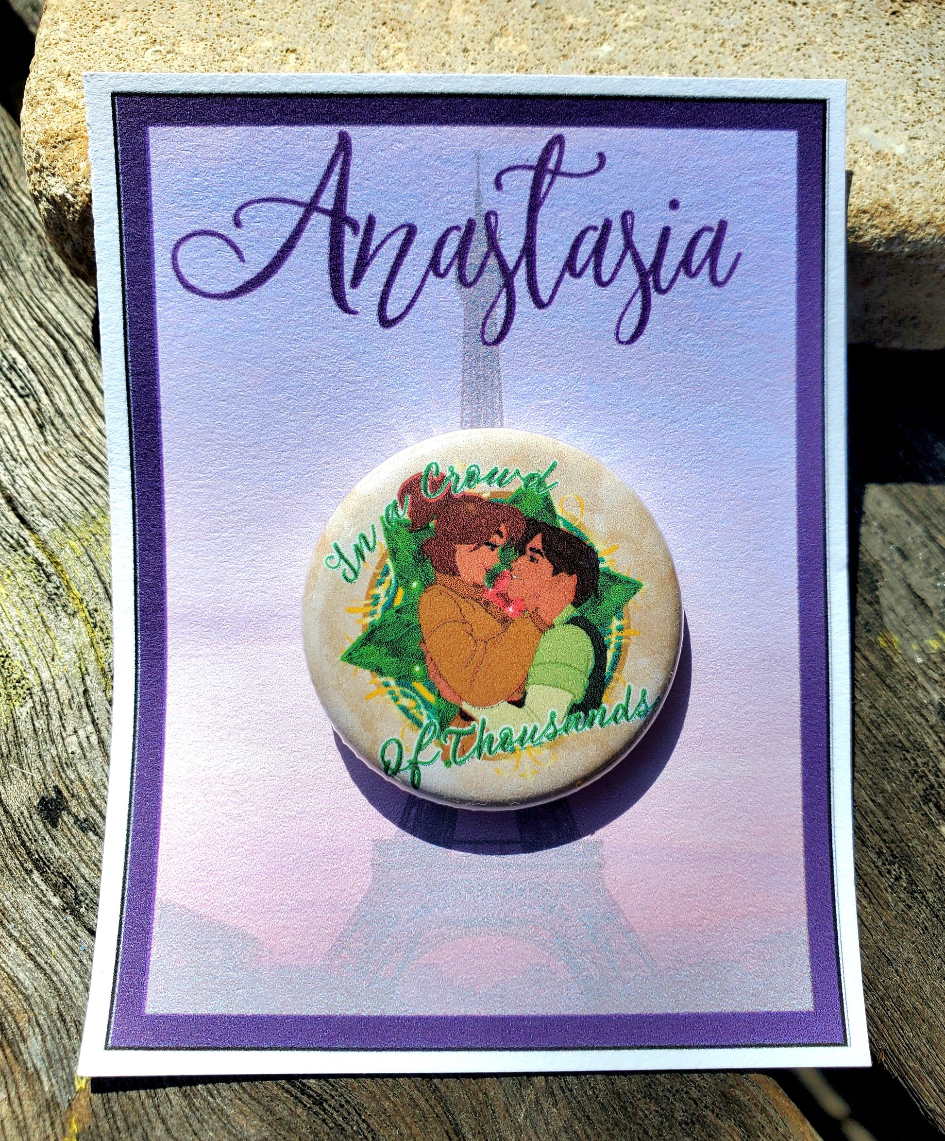 Inspiriert von der Geschichte von ANASTASIA erscheinen Anya und Dmitry gemeinsam auf dieser „In a Crowd of Thousands“-Anstecknadel. Es ist das perfekte Geschenk für die Besetzung zur Premiere oder zur Abschlussvorstellung. Es ist verpackt und bereit zum Verschenken oder Ausstellen.