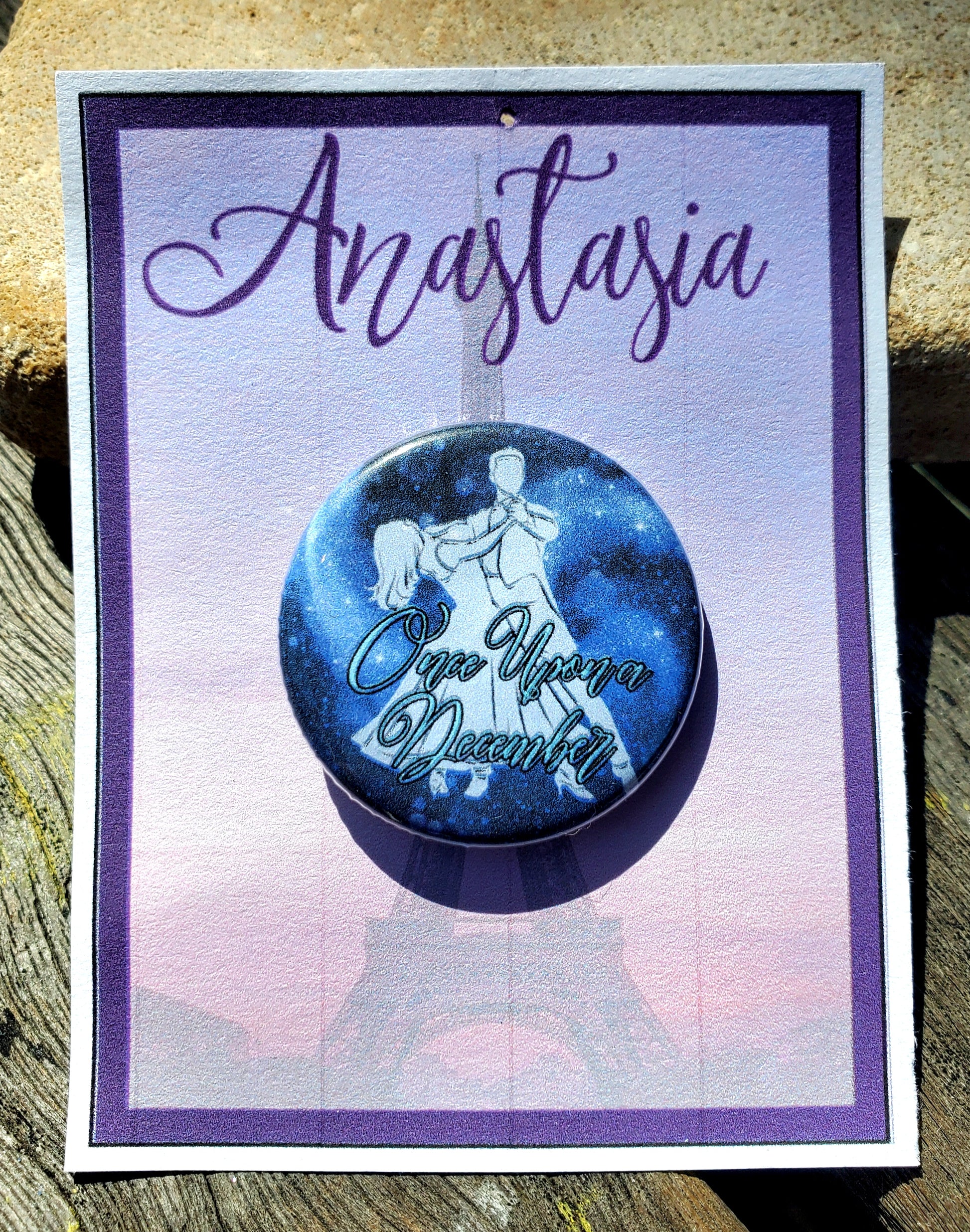 Inspiriert von der Geschichte von ANASTASIA ist auf dieser Anstecknadel eine wunderschöne „Once Upon a December“-Grafik zu sehen. Es ist das perfekte Geschenk für die Besetzung zur Premiere oder zur Abschlussvorstellung. Es ist verpackt und bereit zum Verschenken oder Ausstellen.