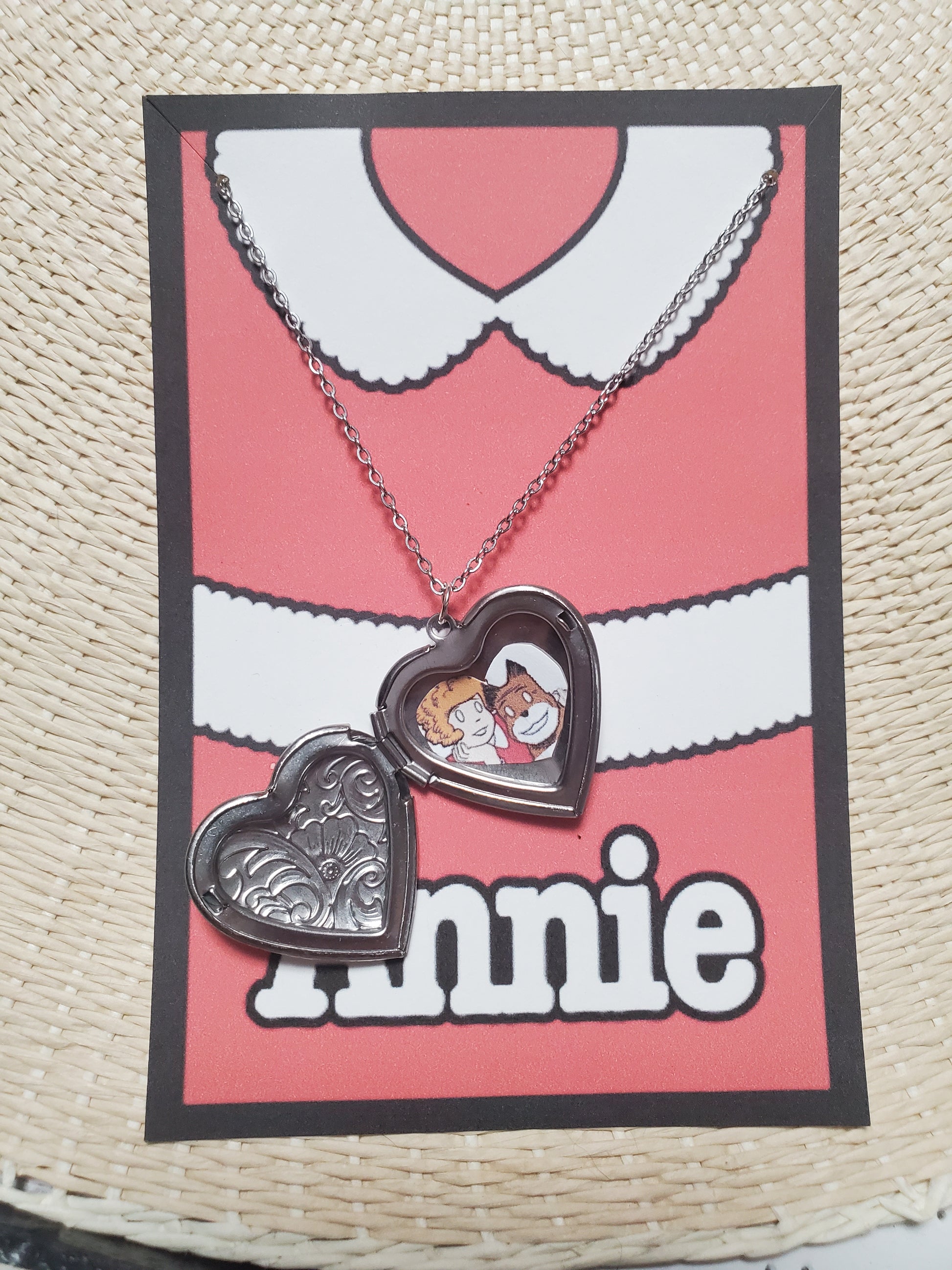 Das Medaillon lässt sich öffnen und enthält eine „Platzhalter“-Grafik von Annie und Sandy. Sie lässt sich leicht entfernen, sodass Sie sie durch ein eigenes, wertvolles Foto ersetzen können.
