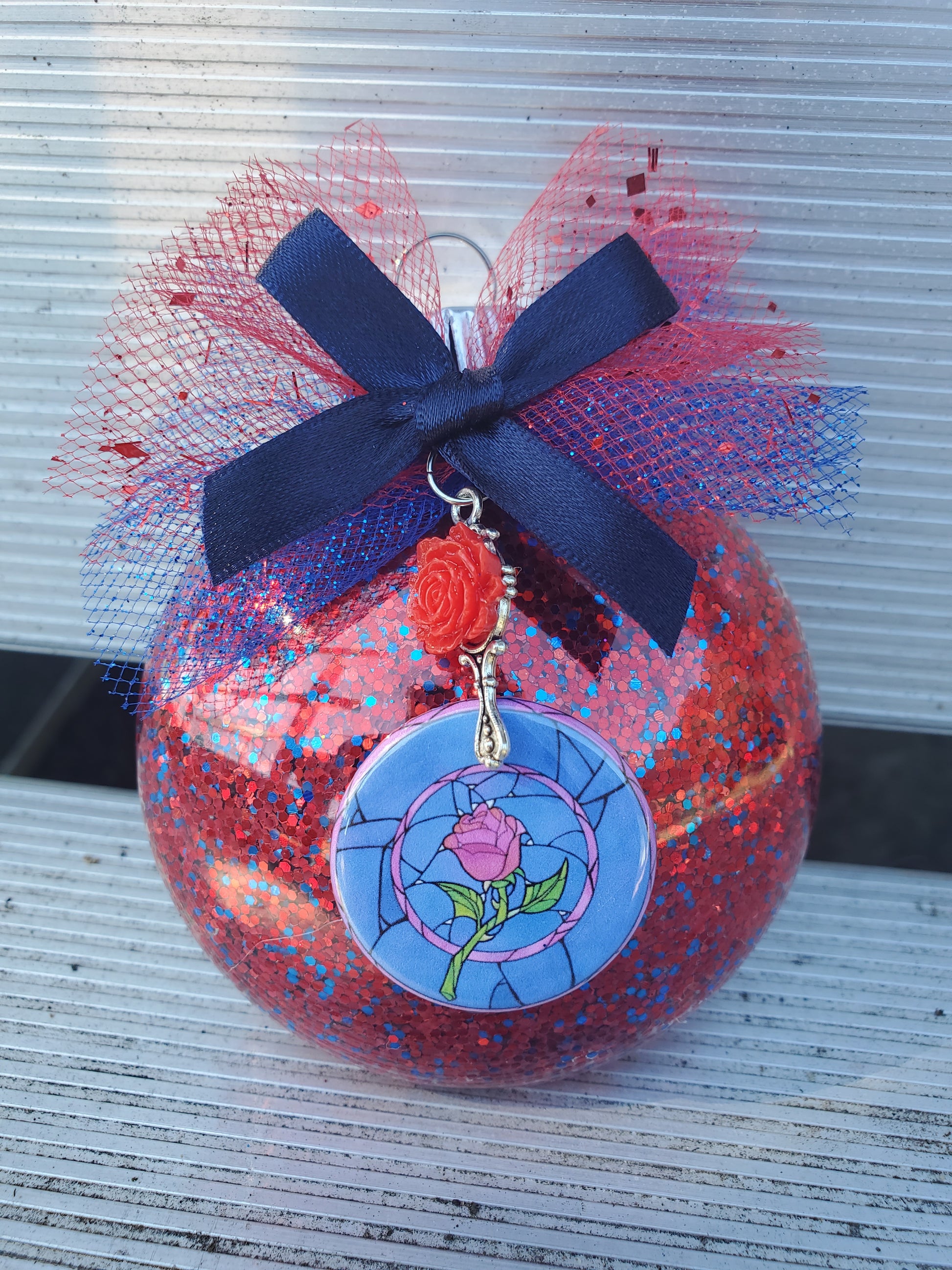 Eine Schicht Verathane und Glitzer überzieht die Innenseite des Ornaments und es ist mit einer Schleife aus Glitzertüll versehen und mit einem 1,25 cm großen silbernen Metallhandspiegel und einer roten Rose aus Kunstharz verziert. Das durchsichtige Acrylornament hat die Form einer „abgeflachten Scheibe“ mit einem Umfang von 7,5 cm und einer Tiefe von 3,8 cm.