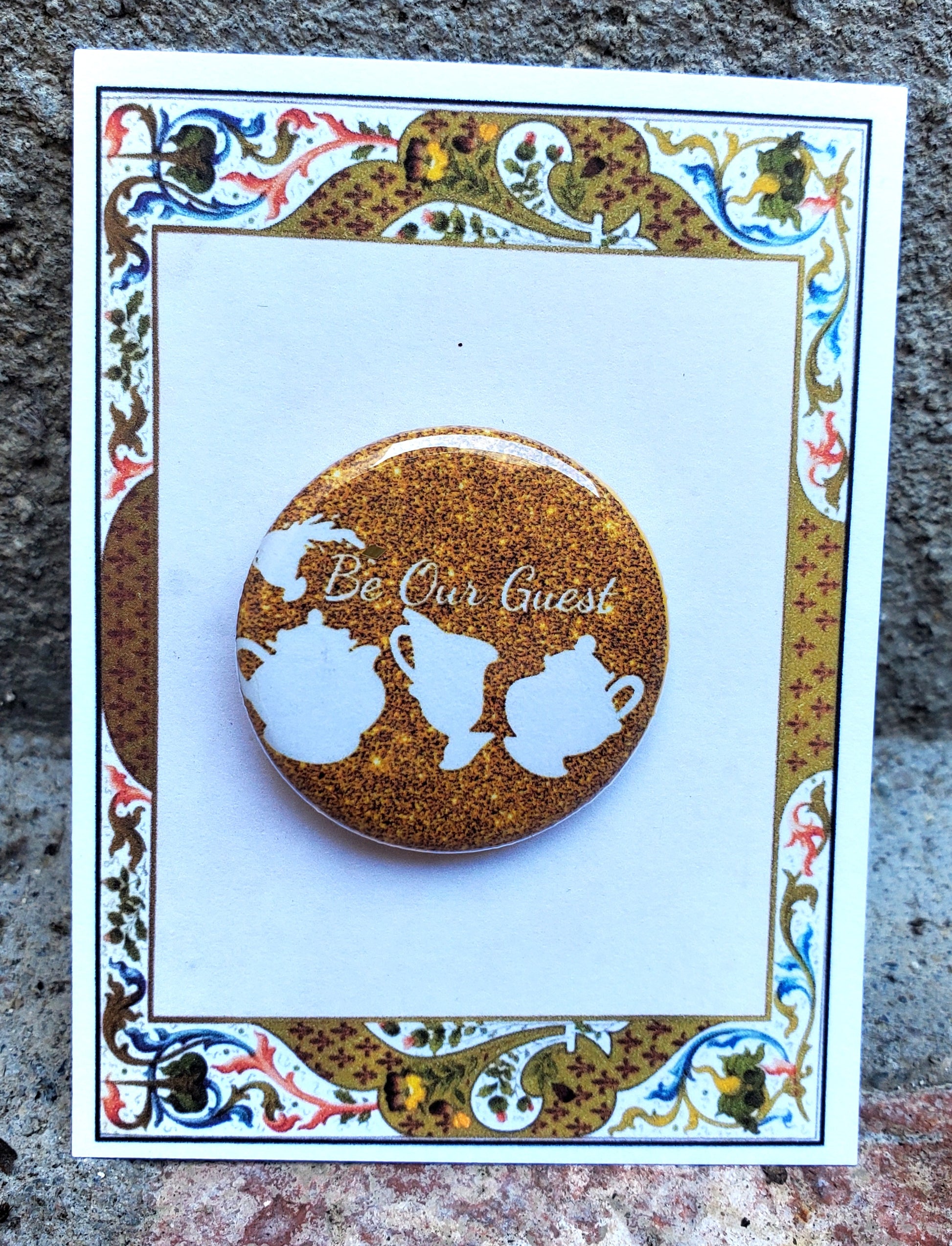 Die Schöne und das Biest - Goldfarbener Anstecker aus Metall "Be Our Guest"