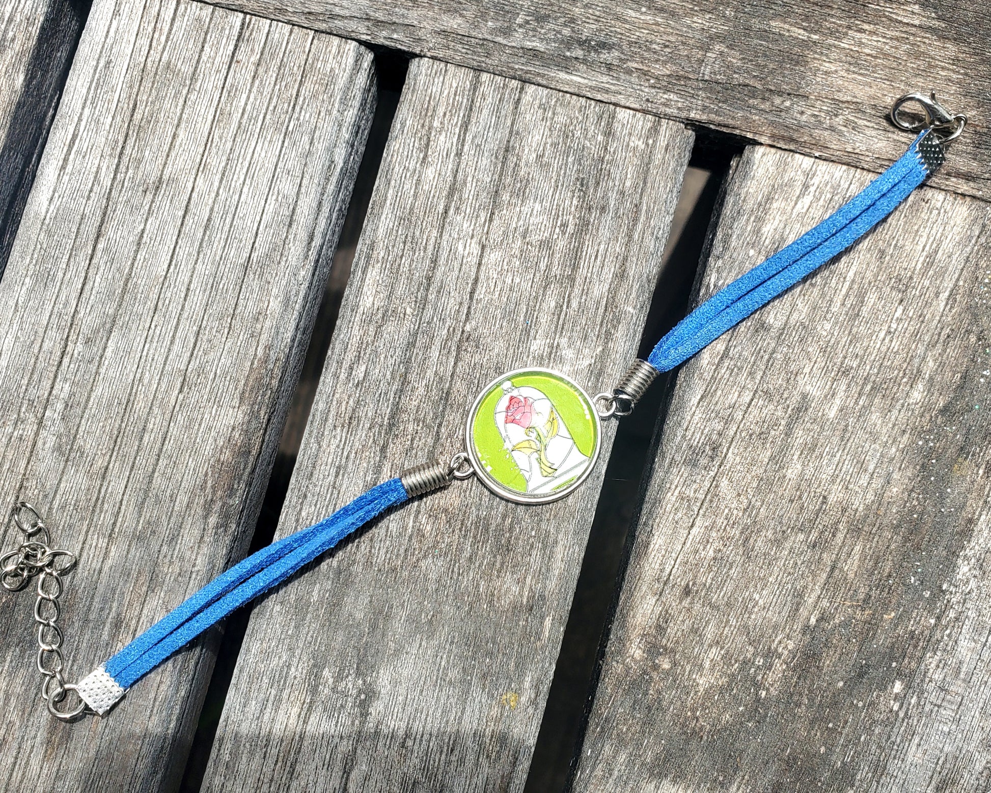 DIE SCHÖNE UND DAS BIEST Armband „Lederband mit Glascabachon-Anhänger“
