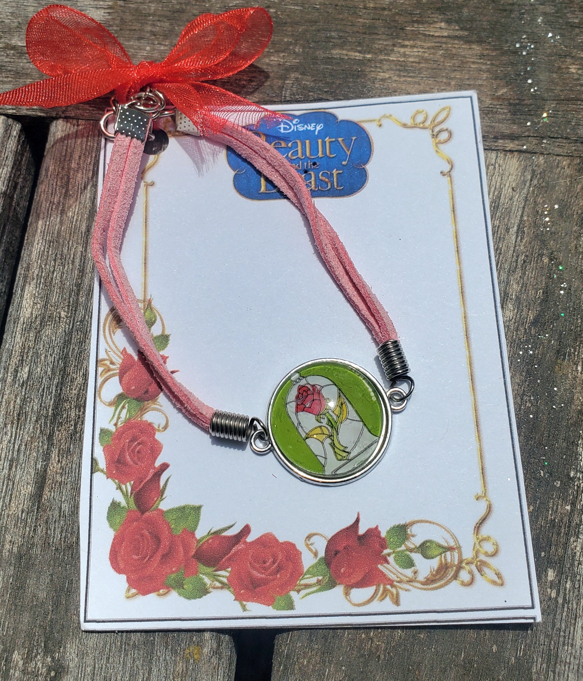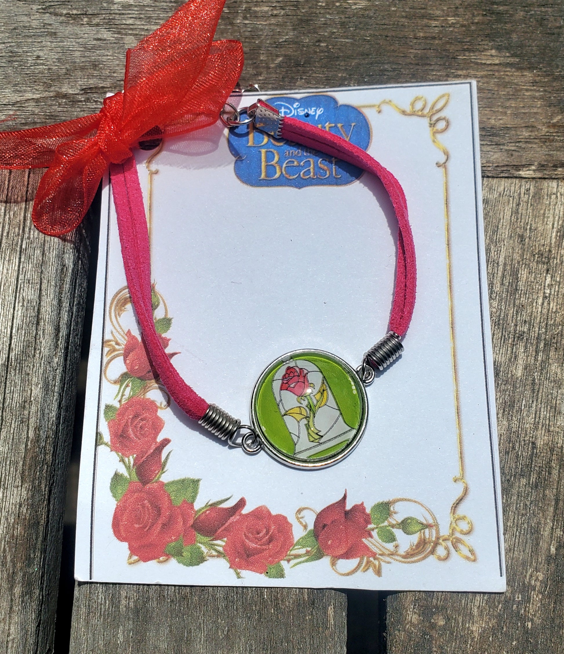 Dieses lustige kleine Armband ist aus Lederband gefertigt und in drei Farben erhältlich: Königsblau, Dunkelrosa und Hellrosa. Der 2,5 cm große Glascabachon-Anhänger in der Mitte zeigt eine farbenfrohe, verzauberte Rosengrafik. Es ist das perfekte Geschenk für Ihre Besetzung, für Darsteller an der Bühnentür oder als einzigartiges Andenken an die Premiere oder die Abschlussvorstellung. Es ist verpackt und bereit zum Verschenken oder Ausstellen.