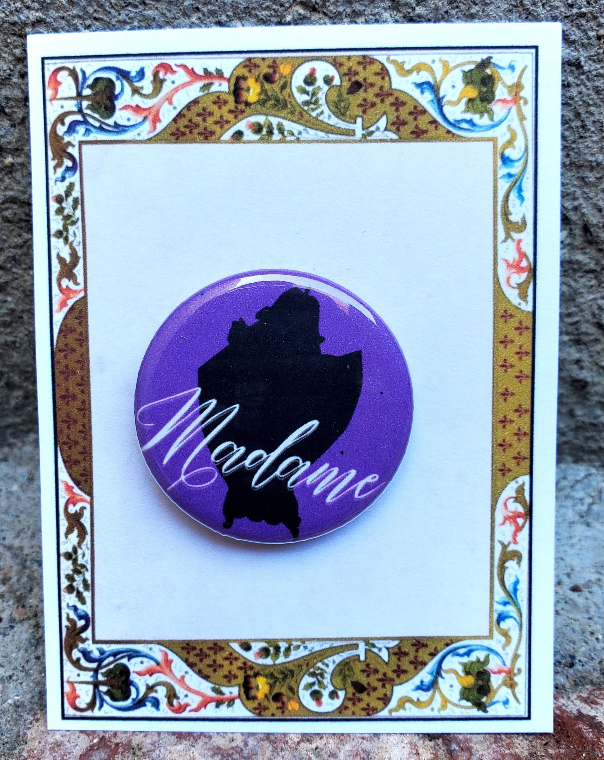 Auf dieser Anstecknadel ist die prächtige „Madame de la Grande Bouche“ (Garderobe) abgebildet. Sie ist das perfekte Geschenk für Ihre Besetzung, für Darsteller am Bühneneingang oder als einzigartiges Andenken an die Premiere oder die Abschlussvorstellung. Sie ist verpackt und bereit zum Verschenken oder Ausstellen.