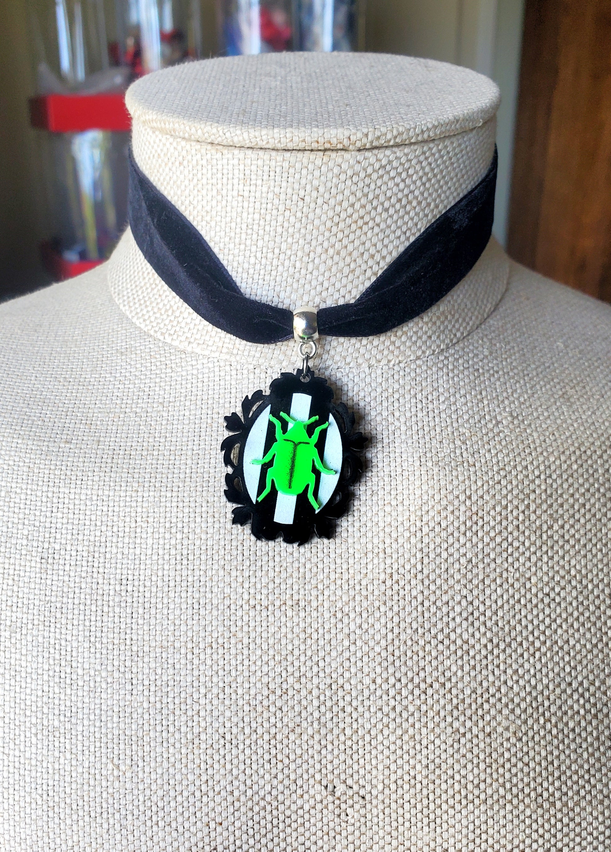Dieses 2,5 cm breite, 34,3 cm lange schwarze Ripsband-Halsband mit einer 5 cm langen Kettenverlängerung verfügt über einen verschiebbaren Ancestor-Anhänger, inspiriert vom Musical ADDAMS FAMILY! Dieser Artikel ist das perfekte Geschenk für Ihre Besetzung, für Darsteller an der Bühnentür oder als einzigartiges Andenken an die Premiere oder die Abschlussvorstellung. Es ist verpackt und bereit zum Verschenken oder Ausstellen.