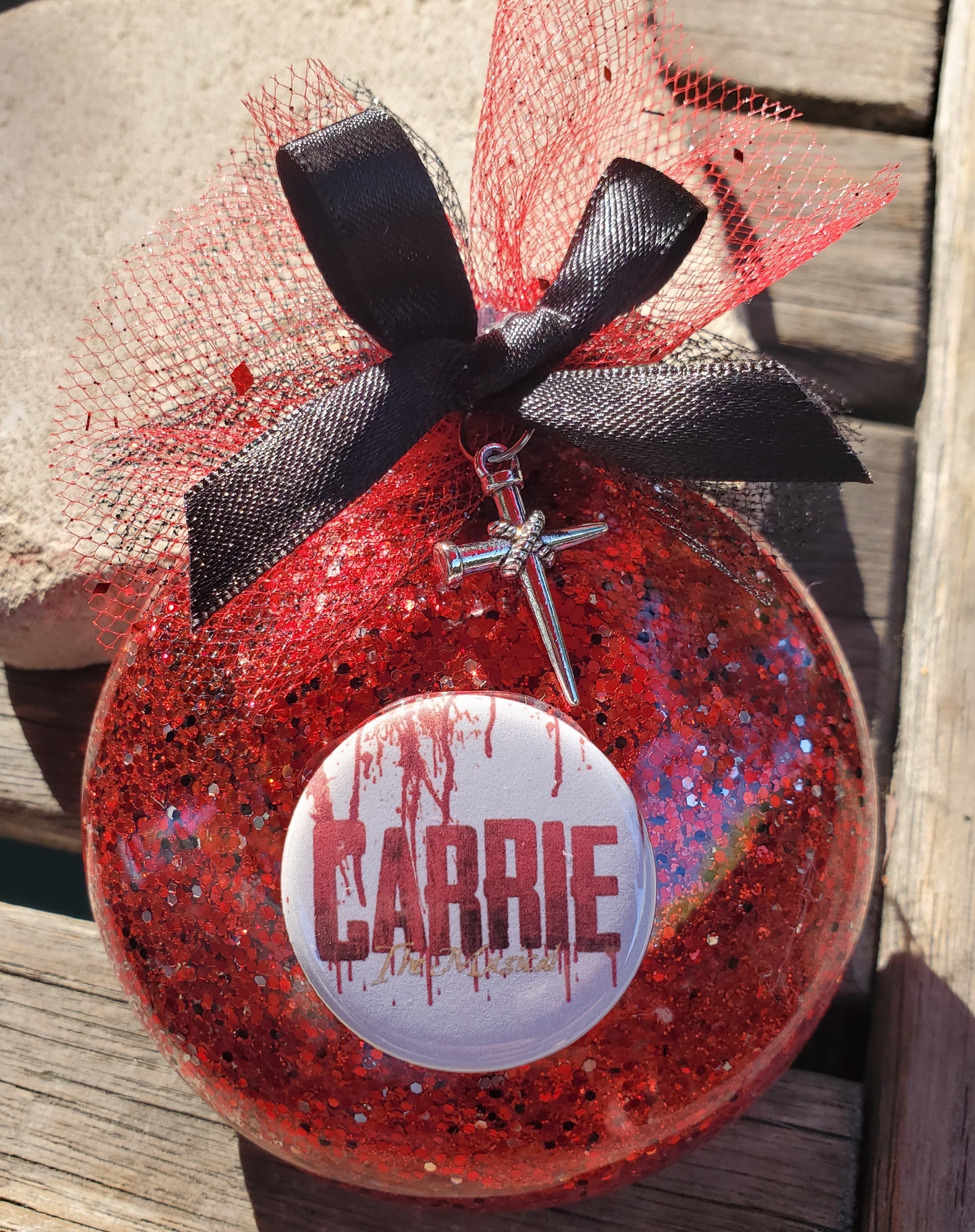 Dieses Weihnachtsornament zeigt eine „CARRIE“-Grafik. Es ist das perfekte Geschenk für Ihre Besetzung, für Künstler am Bühneneingang oder als einzigartiges Andenken an die Premiere oder Abschlussvorstellung. Es ist verpackt und bereit zum Verschenken oder Ausstellen.