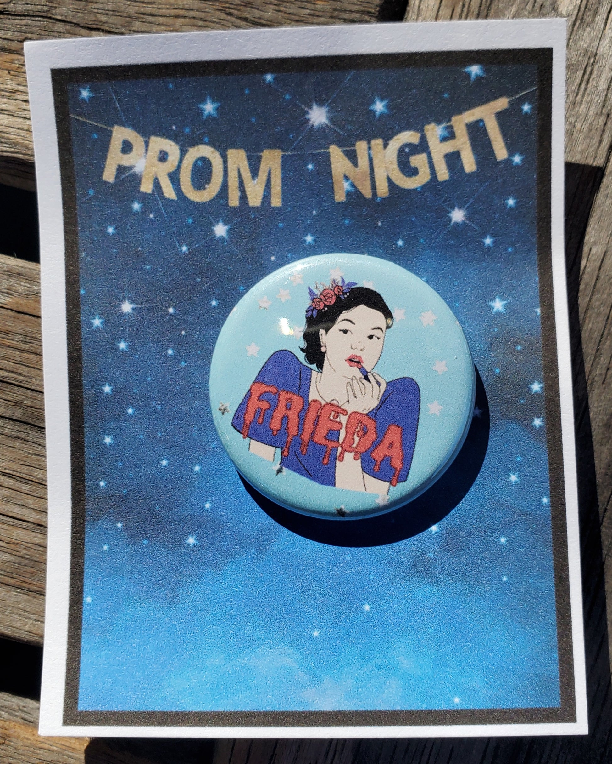Auf dieser CARRIE-Anstecknadel ist „FRIEDA“ abgebildet. Sie ist das perfekte Geschenk für Ihre Besetzung, für Darsteller am Bühneneingang oder als einzigartiges Andenken an die Premiere oder die Abschlussvorstellung. Es ist verpackt und bereit zum Verschenken oder Ausstellen.