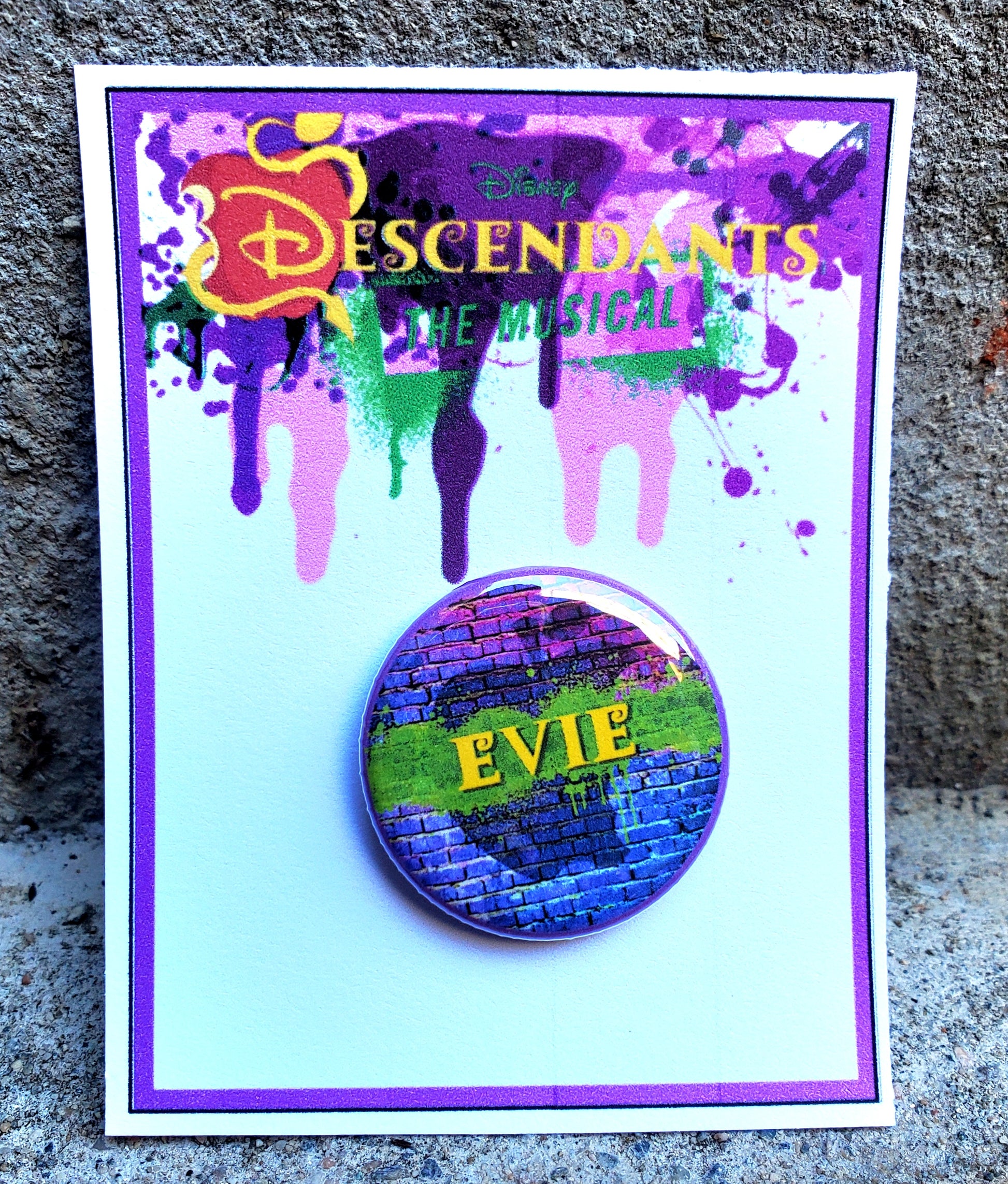 „EVIE“, die Tochter der bösen Königin, ist auf dieser Anstecknadel aus dem Film/Musical DESCENDANTS abgebildet. Sie ist das perfekte Geschenk für Ihre Besetzung, für Darsteller am Bühneneingang oder als einzigartiges Andenken an die Premiere oder die Abschlussvorstellung. Es ist verpackt und bereit zum Verschenken oder Ausstellen.
