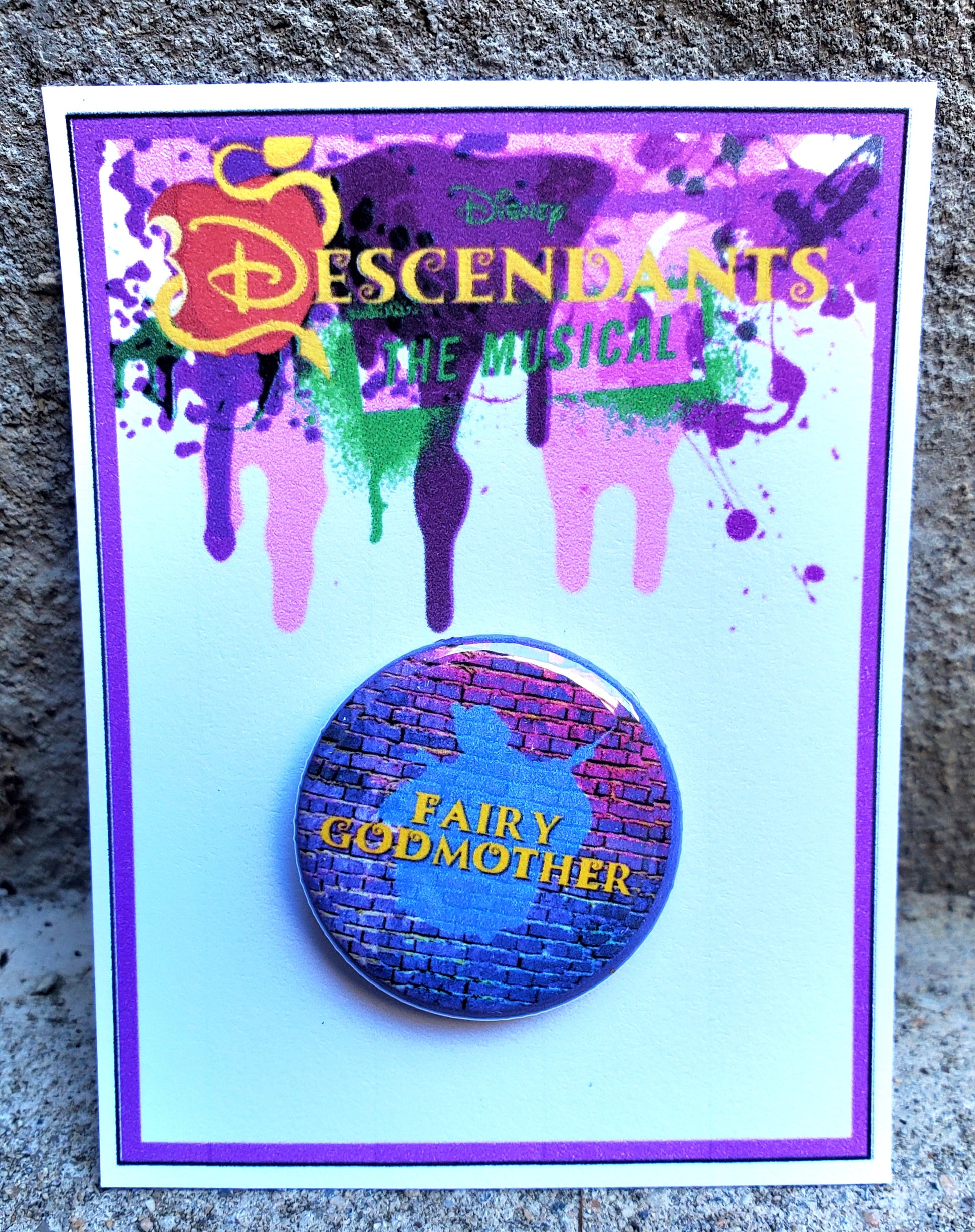 „Fairy Godmother“, Janes gütige Mutter, ist auf dieser Anstecknadel aus dem Film/Musical DESCENDANTS abgebildet. Sie ist das perfekte Geschenk für Ihre Besetzung, für Darsteller am Bühneneingang oder als einzigartiges Andenken an die Premiere oder die Abschlussvorstellung. Es ist verpackt und bereit zum Verschenken oder Ausstellen.