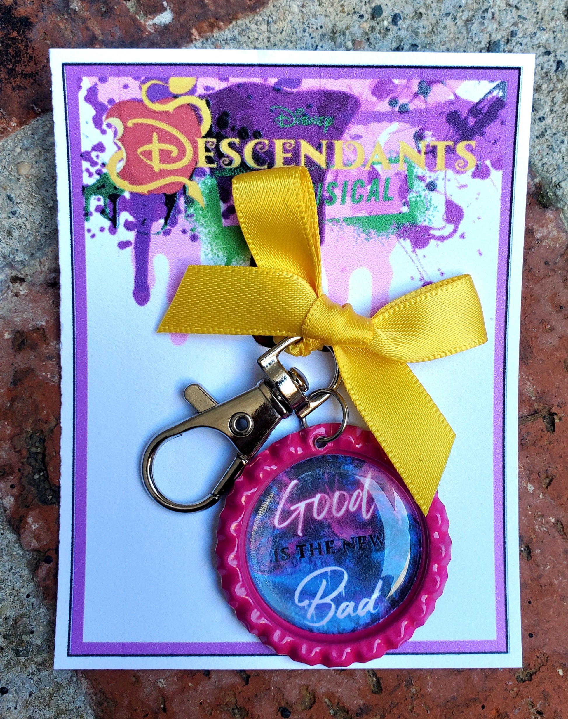 „Good is the New Bad“ steht auf diesem Flaschenverschluss-Schlüsselanhänger aus dem Film/Musical DESCENDANTS. Er ist das perfekte Geschenk für Ihre Besetzung, für Darsteller am Bühneneingang oder als einzigartiges Andenken an die Premiere oder die Abschlussvorstellung. Es ist verpackt und bereit zum Verschenken oder Ausstellen.