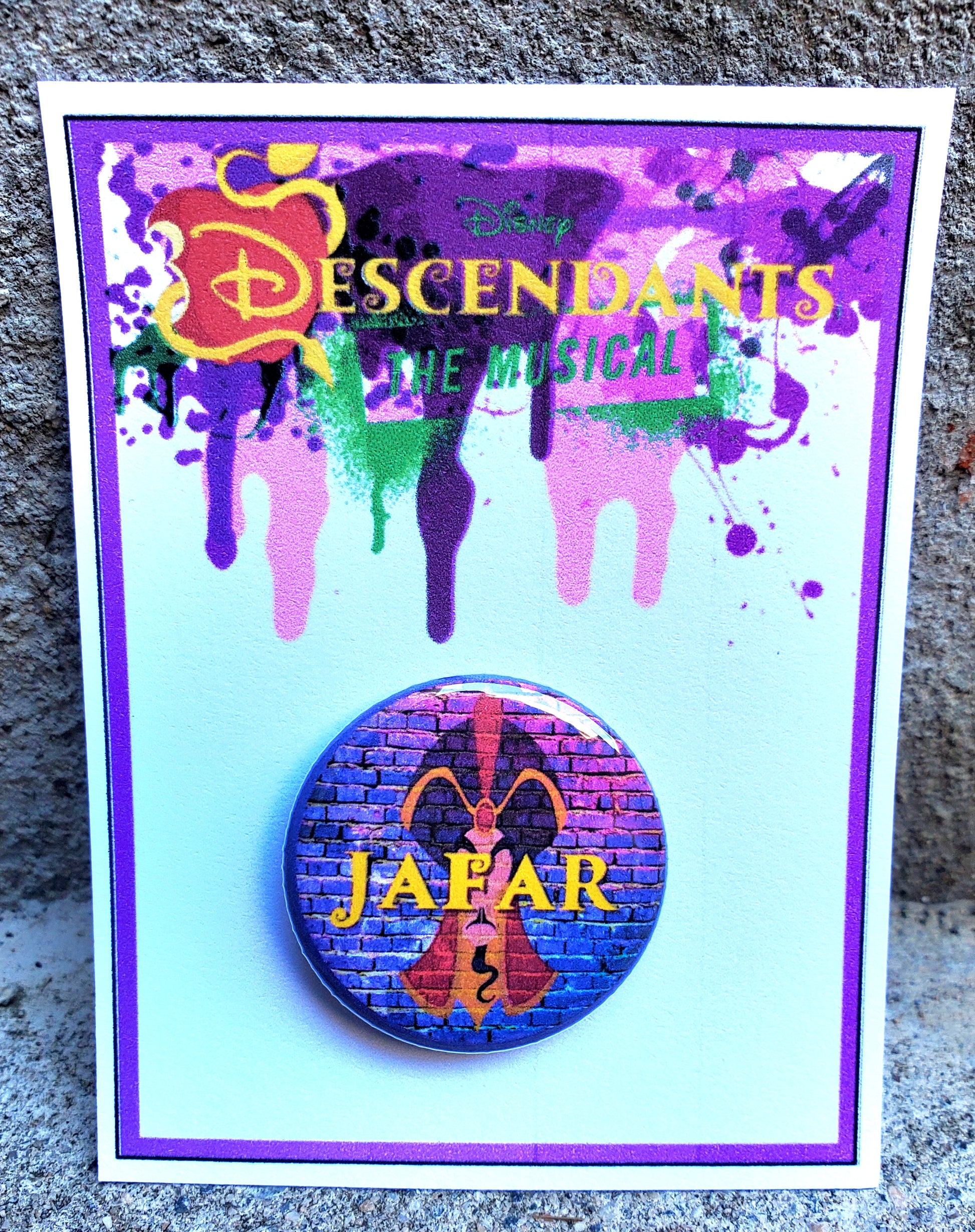 „JAFAR“, Jays Vater, ist auf dieser Anstecknadel aus dem Film/Musical DESCENDANTS abgebildet. Sie ist das perfekte Geschenk für Ihre Besetzung, für Darsteller am Bühneneingang oder als einzigartiges Andenken an die Premiere oder die Abschlussvorstellung. Es ist verpackt und bereit zum Verschenken oder Ausstellen.