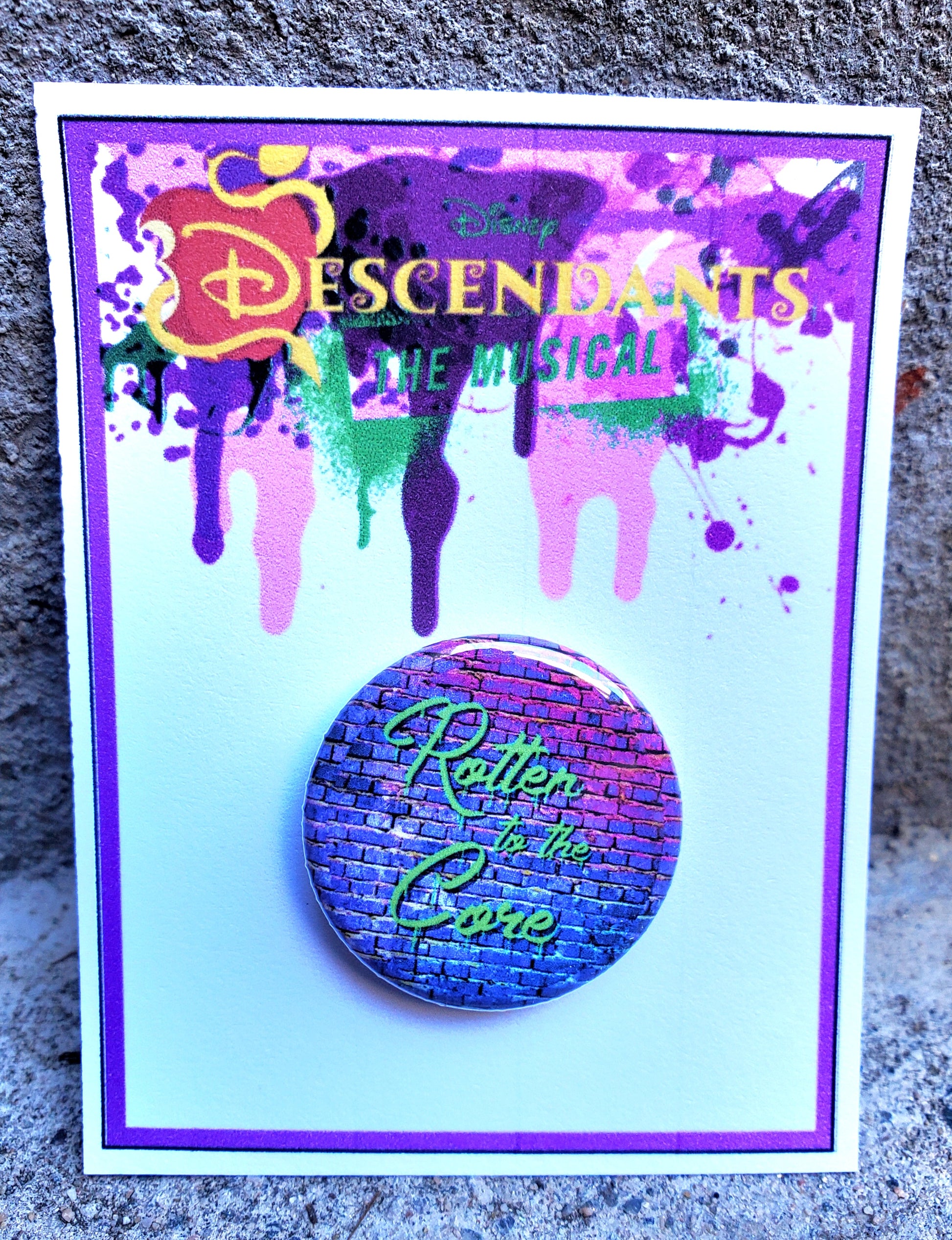 „ROTTEN TO THE CORE“ steht auf dieser Anstecknadel aus dem Film/Musical DESCENDANTS. Sie ist das perfekte Geschenk für Ihre Besetzung, für Darsteller am Bühneneingang oder als einzigartiges Andenken an die Premiere oder die Abschlussvorstellung. Es ist verpackt und bereit zum Verschenken oder Ausstellen.