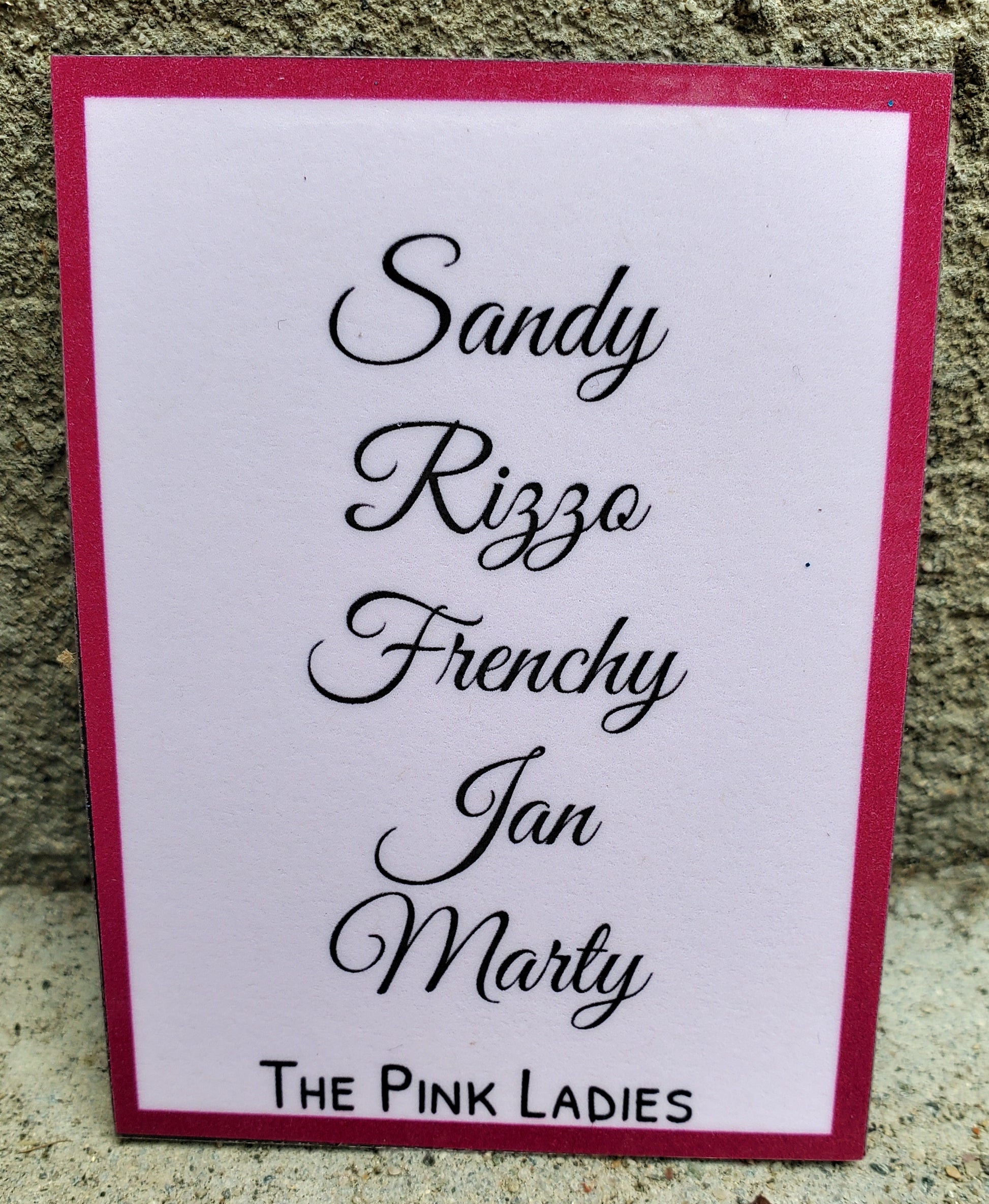 Die Namen der „Pink Ladies“: Sandy, Rizzo, Frenchy, Jan und Marty sind auf diesem lustigen Magneten aufgeführt. Er ist das perfekte Geschenk für Ihre Besetzung, für Darsteller am Bühneneingang oder als einzigartiges Andenken an die Premiere oder die Abschlussvorstellung. Er misst 2 1/4 x 3 Zoll und ist verpackt und bereit zum Verschenken oder Ausstellen.