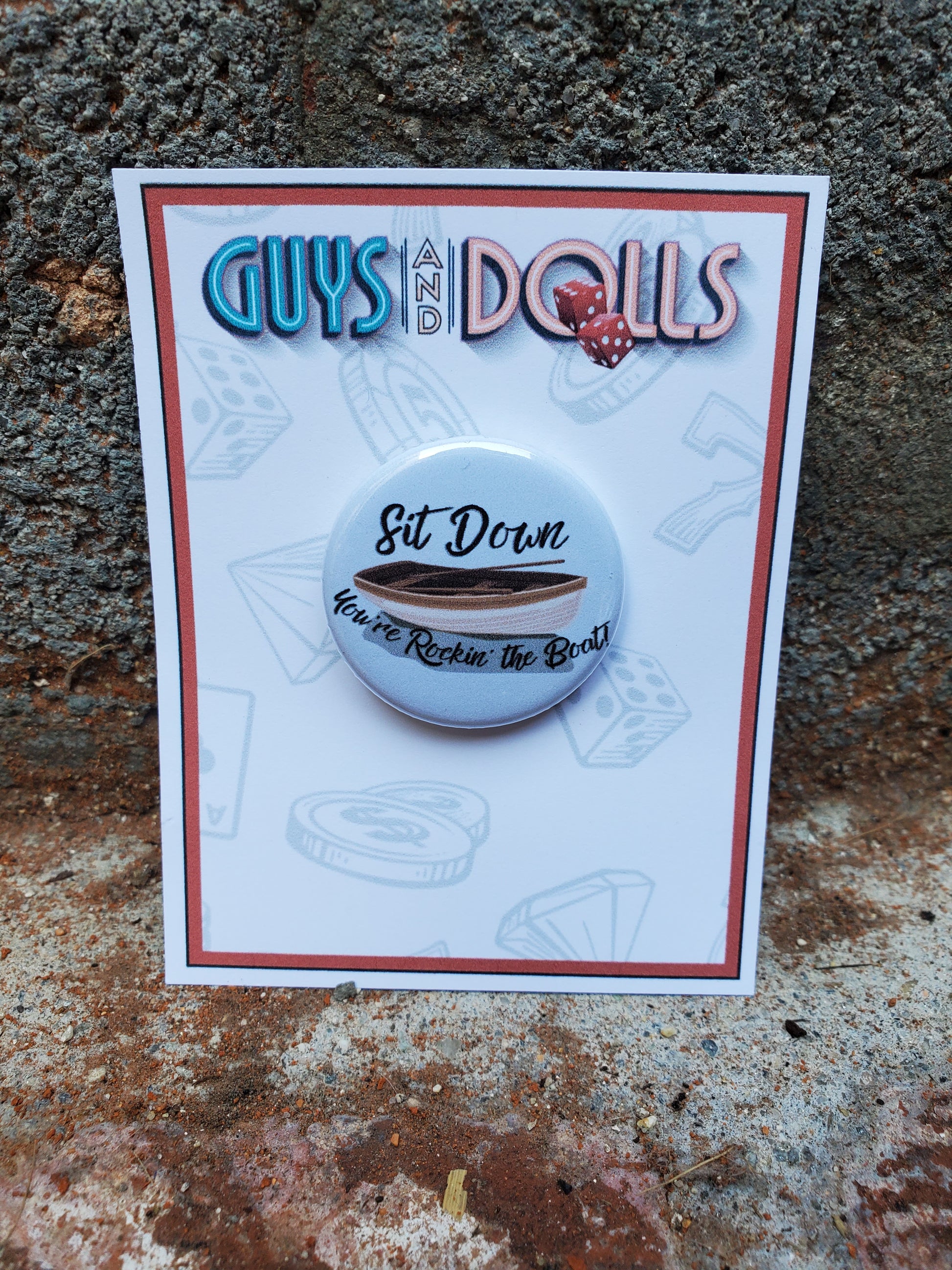 GUYS AND DOLLS "Setz dich, du bringst das Boot zum Schaukeln" Metall-Anstecker