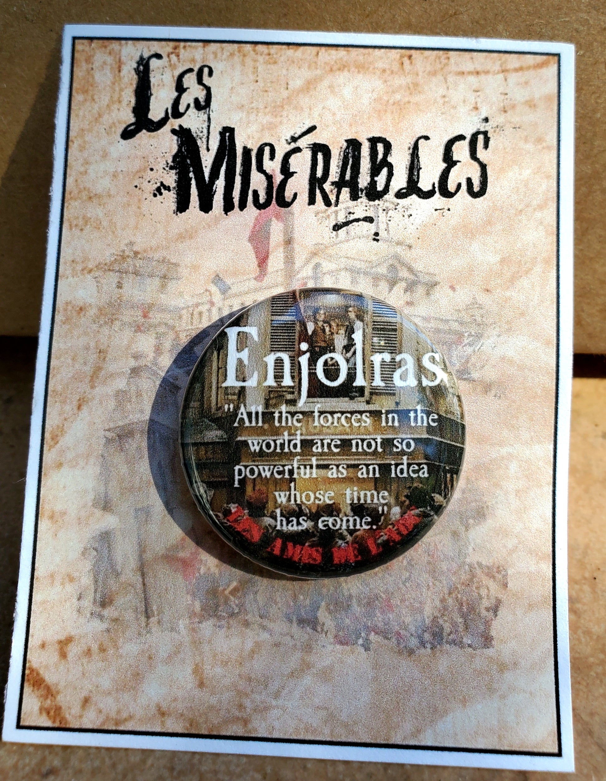 Auf dieser Anstecknadel ist der Schüler „Enjolras“ mit einem seiner Zitate aus dem Roman abgebildet. Dieser Artikel eignet sich perfekt als Geschenk für die Besetzung, als Dankeschön, als Geschenk zur Eröffnung oder zum Abschluss einer Show, als Geschenk an der Bühnentür oder als Andenken für das Publikum oder die Fans des Buches, Musicals und der Filme.