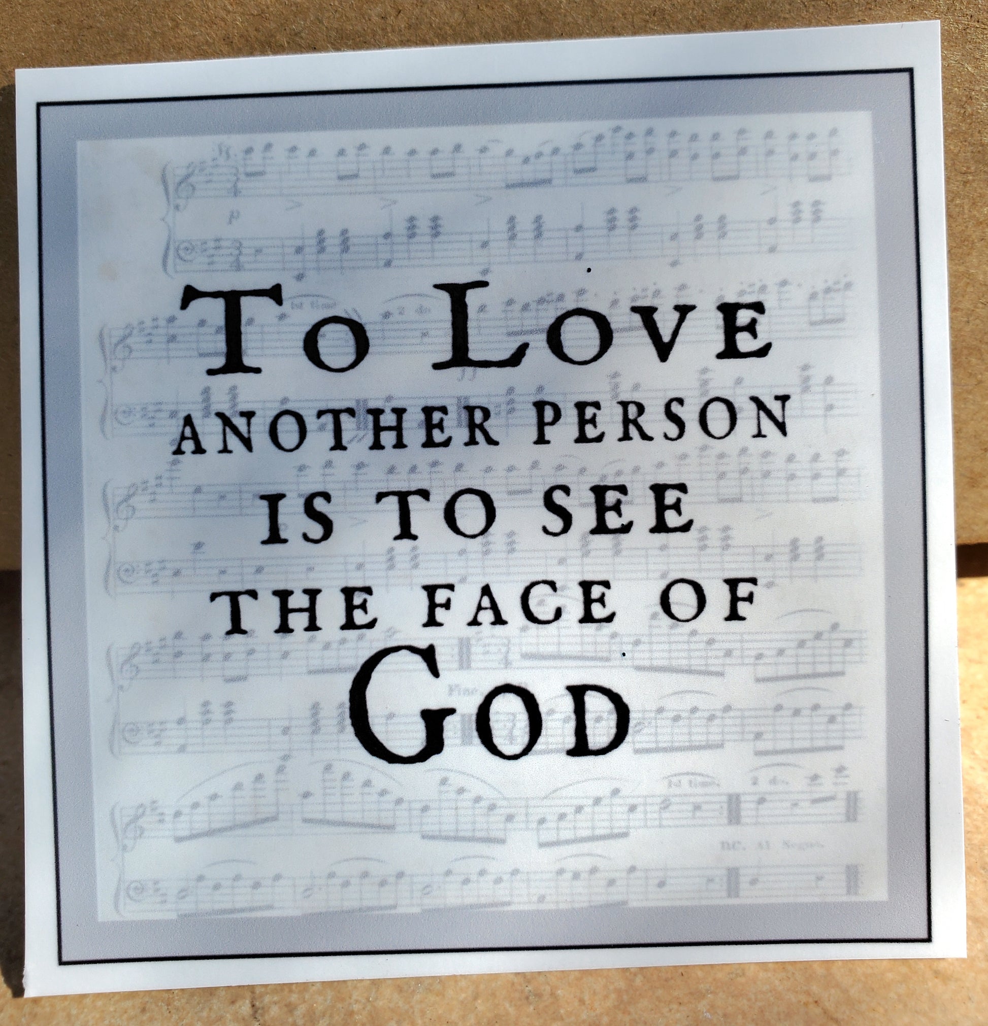 Der berühmte Satz „Einen anderen Menschen zu lieben bedeutet, das Antlitz Gottes zu sehen“ ist auf diesem Magneten zu sehen. Dieser Artikel eignet sich perfekt als Geschenk für die Besetzung, als Dankeschön, als Geschenk zur Eröffnungsshow, als Geschenk zum Abschluss einer Show, als Bühnengeschenk oder als Andenken für das Publikum oder Fans des Buches, Musicals und der Filme.