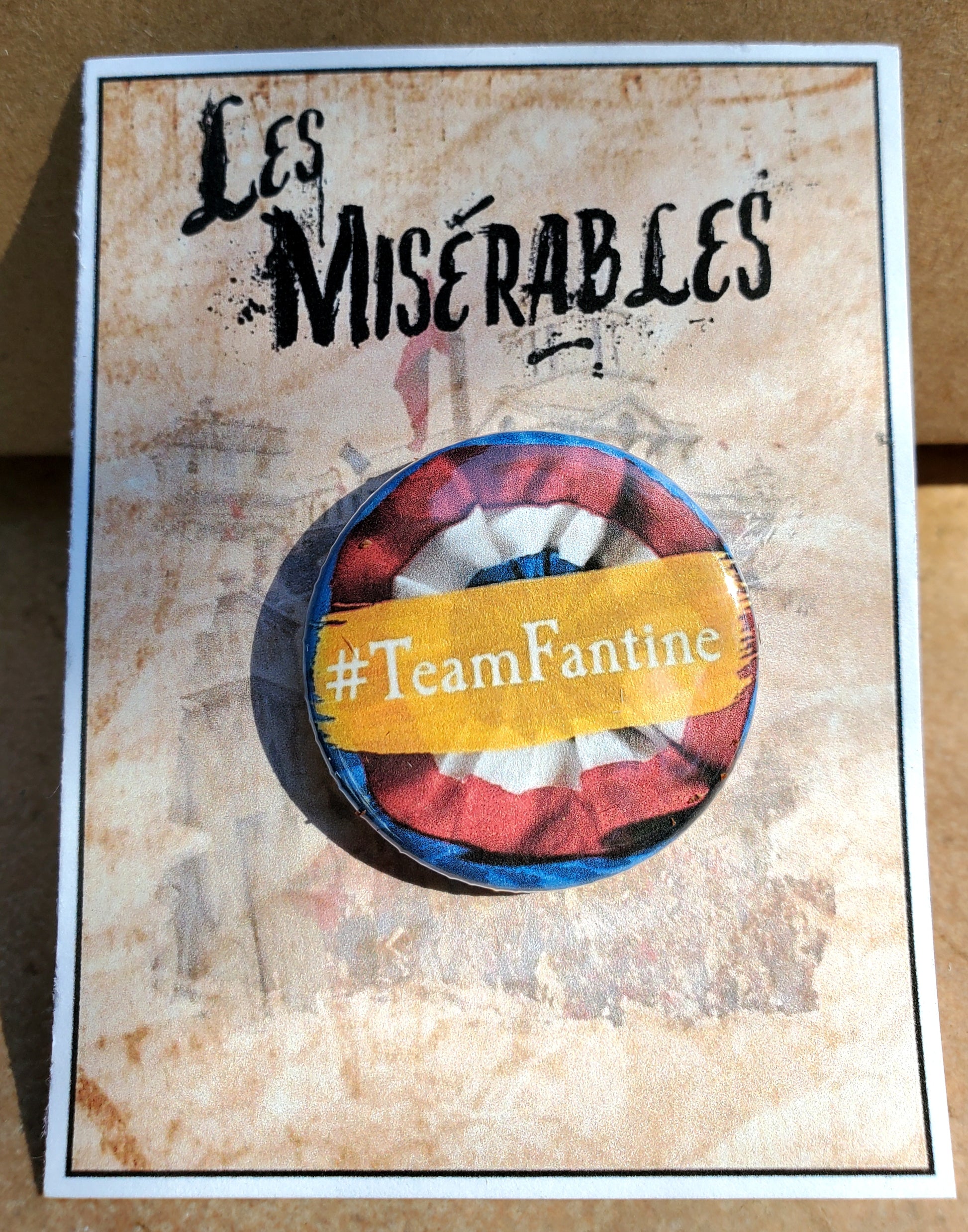 Eine perfekte Anstecknadel für alle im „Team Fantine!“ Dieser Artikel eignet sich perfekt als Geschenk für die Besetzung, als Dankeschön, als Geschenk zur Eröffnungsshow, als Geschenk zum Abschluss einer Show, als Bühnengeschenk oder als Andenken für das Publikum oder Fans des Buches, Musicals und der Filme.