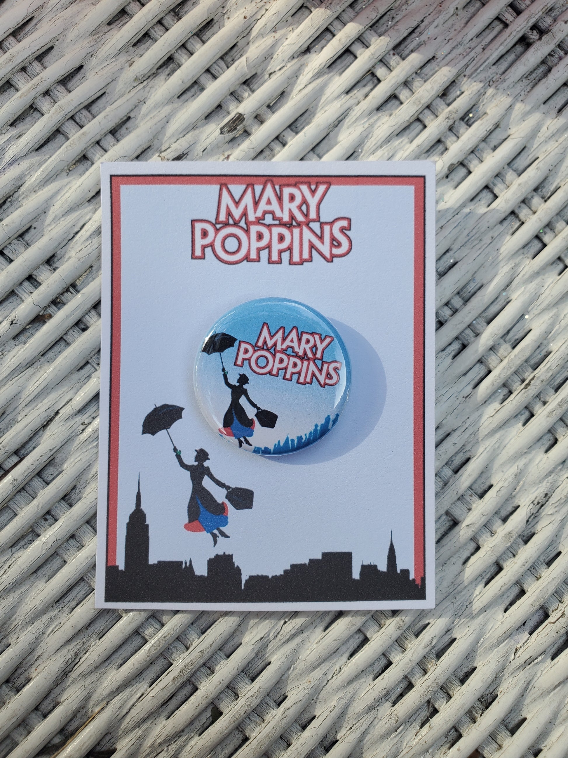 Auf dieser Anstecknadel aus dem klassischen Filmmusical „Mary Poppins“ ist eine lustige „Flying Mary“-Grafik zu sehen. Sie ist das perfekte Geschenk für Ihre Besetzung, für Darsteller am Bühneneingang oder als einzigartiges Andenken an die Premiere oder die Abschlussvorstellung. Es ist verpackt und bereit zum Verschenken oder Ausstellen.