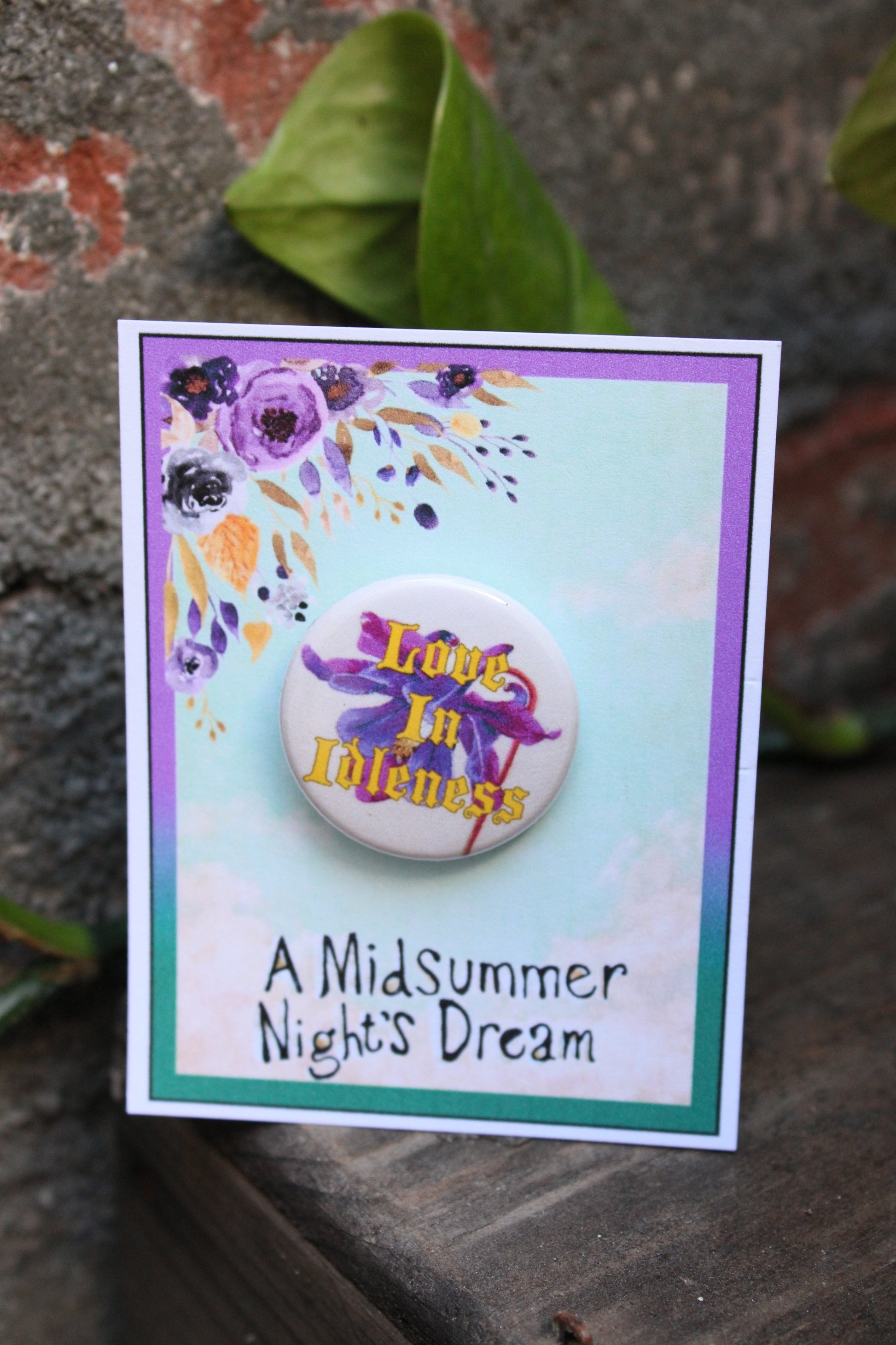 Die berühmte Blüte „Love in Idleness“ ist auf dieser Anstecknadel abgebildet. Sie ist das perfekte Geschenk für Ihre Besetzung, für Darsteller am Bühneneingang oder als einzigartiges Andenken an die Premiere oder die Abschlussvorstellung. Sie ist verpackt und bereit zum Verschenken oder Ausstellen.
