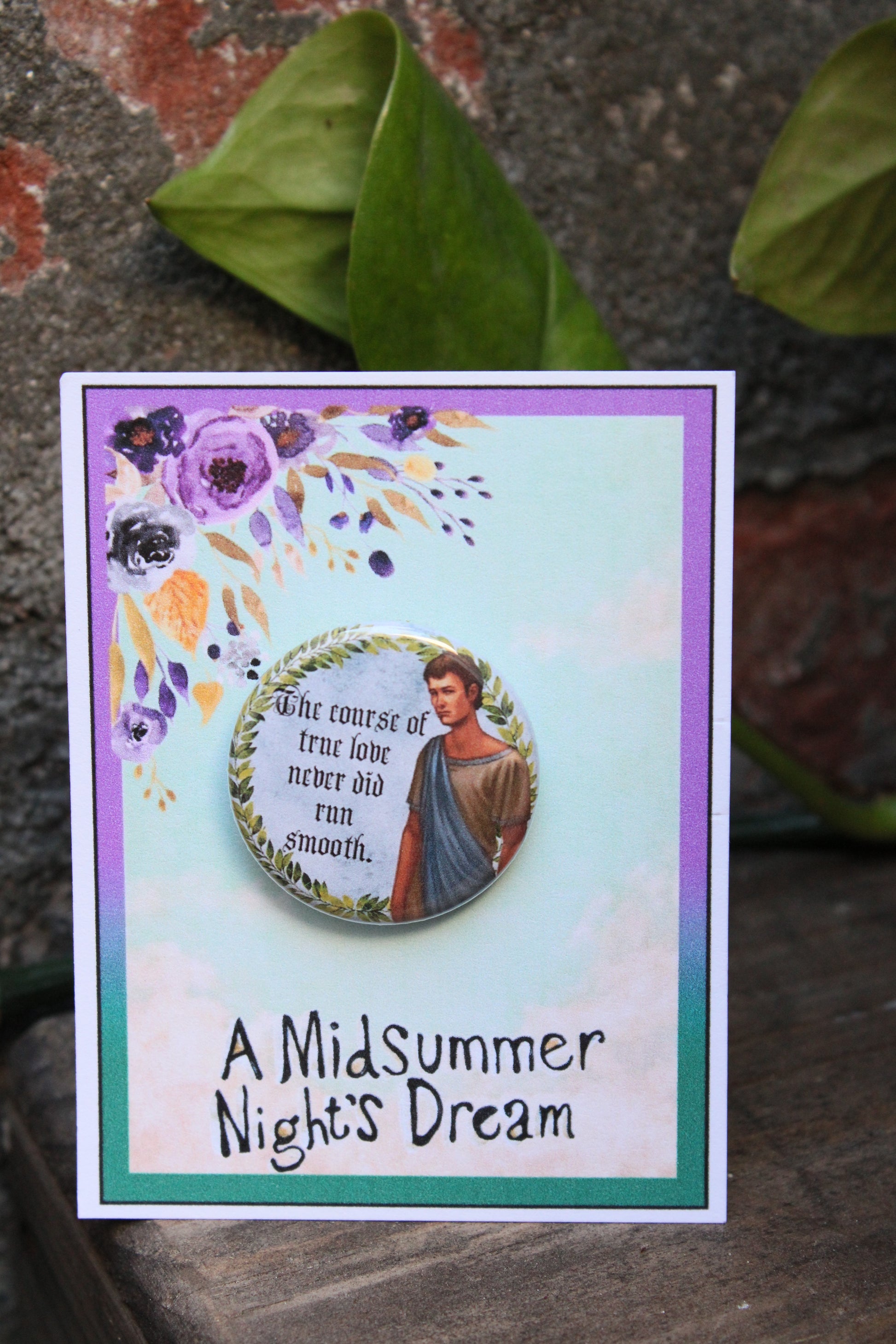 „Der Lauf der wahren Liebe verlief nie glatt“, eine von Lysanders berühmten Zeilen aus dem Stück, ist auf dieser Anstecknadel abgebildet. Sie ist das perfekte Geschenk für Ihre Besetzung, für Darsteller an der Bühnentür oder als einzigartiges Andenken an die Premiere oder die Abschlussvorstellung. Sie ist verpackt und bereit zum Verschenken oder Ausstellen.