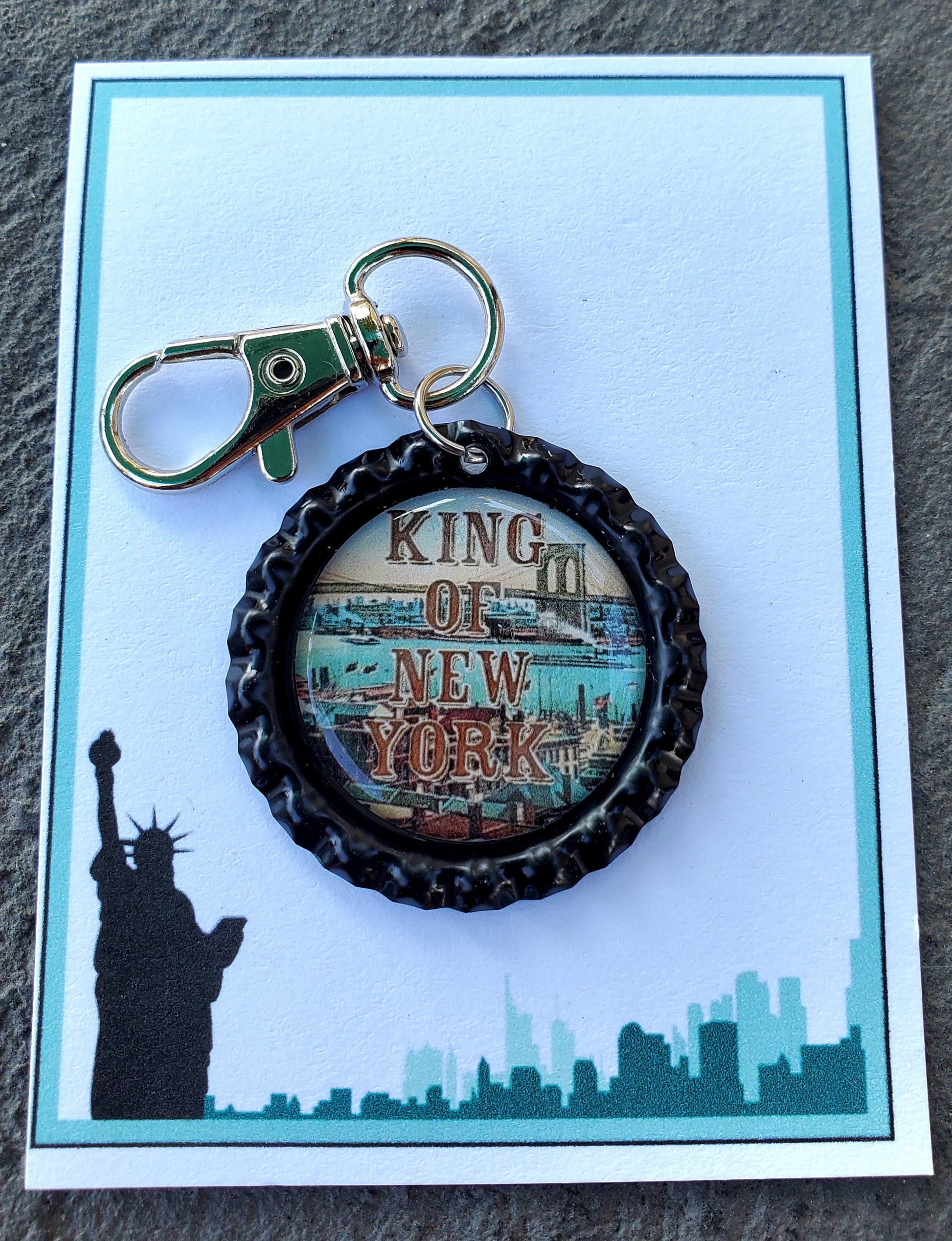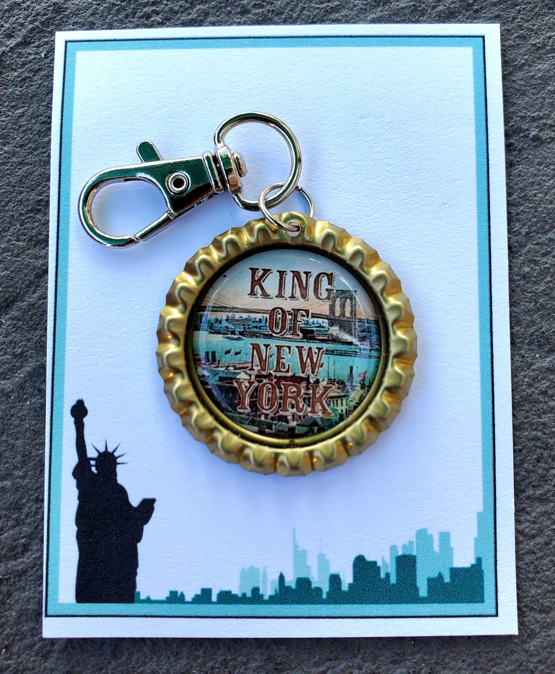 Ich bin der „König von New York!“, singt dieser Schlüsselanhänger aus Kronkorken! Er ist das perfekte Geschenk für Ihre Besetzung, für Darsteller am Bühneneingang oder als einzigartiges Andenken an die Premiere oder die Abschlussvorstellung.