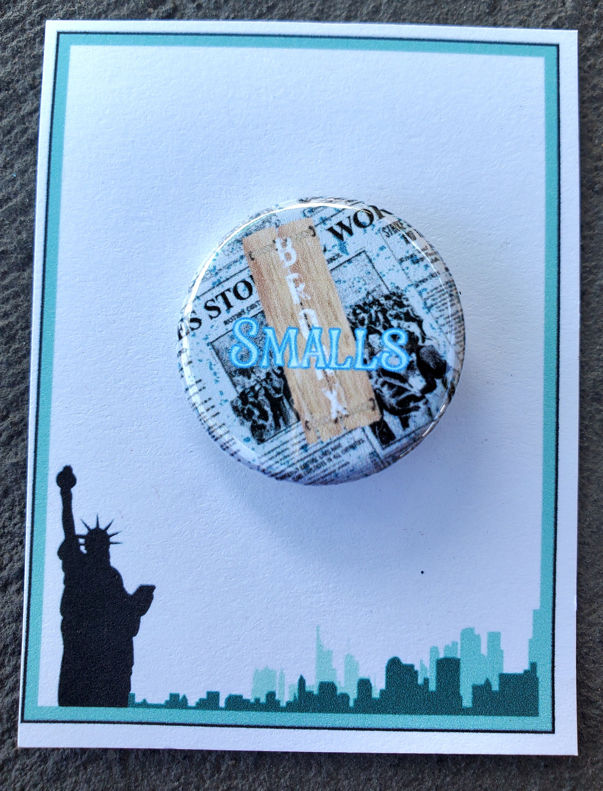 Bronx Newsie SMALLS ist auf diesem Metall-Anstecker abgebildet. Er ist das perfekte Geschenk für Ihre Besetzung, für Darsteller am Bühneneingang oder als einzigartiges Andenken an die Premiere oder die Abschlussvorstellung.
