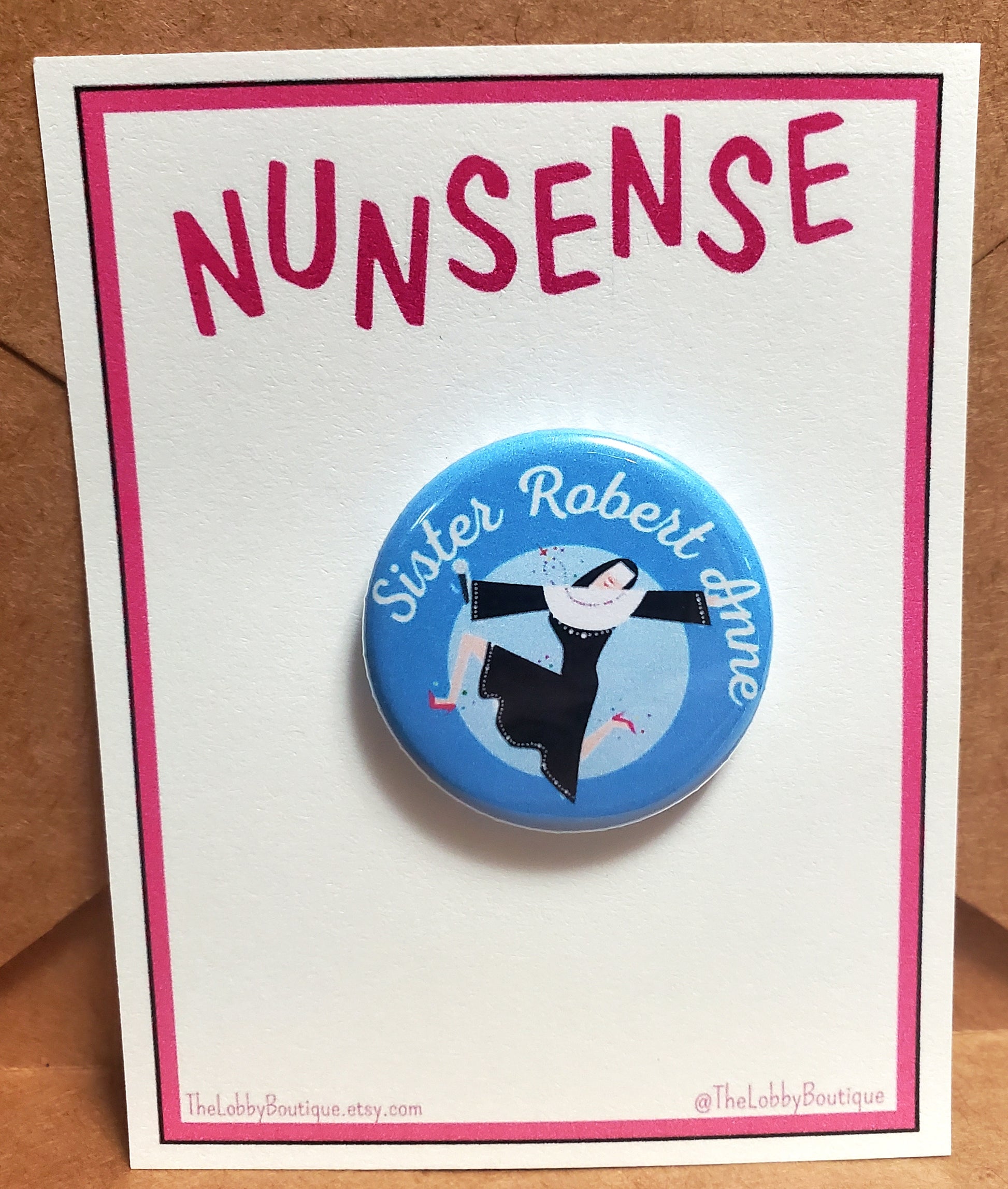 Auf dieser Anstecknadel ist Schwester Robert Anne abgebildet. Sie ist das perfekte Geschenk für Ihre Besetzung, für Darsteller am Bühneneingang oder als einzigartiges Andenken an die Premiere oder die Abschlussvorstellung. Sie ist verpackt und bereit zum Verschenken oder Ausstellen.