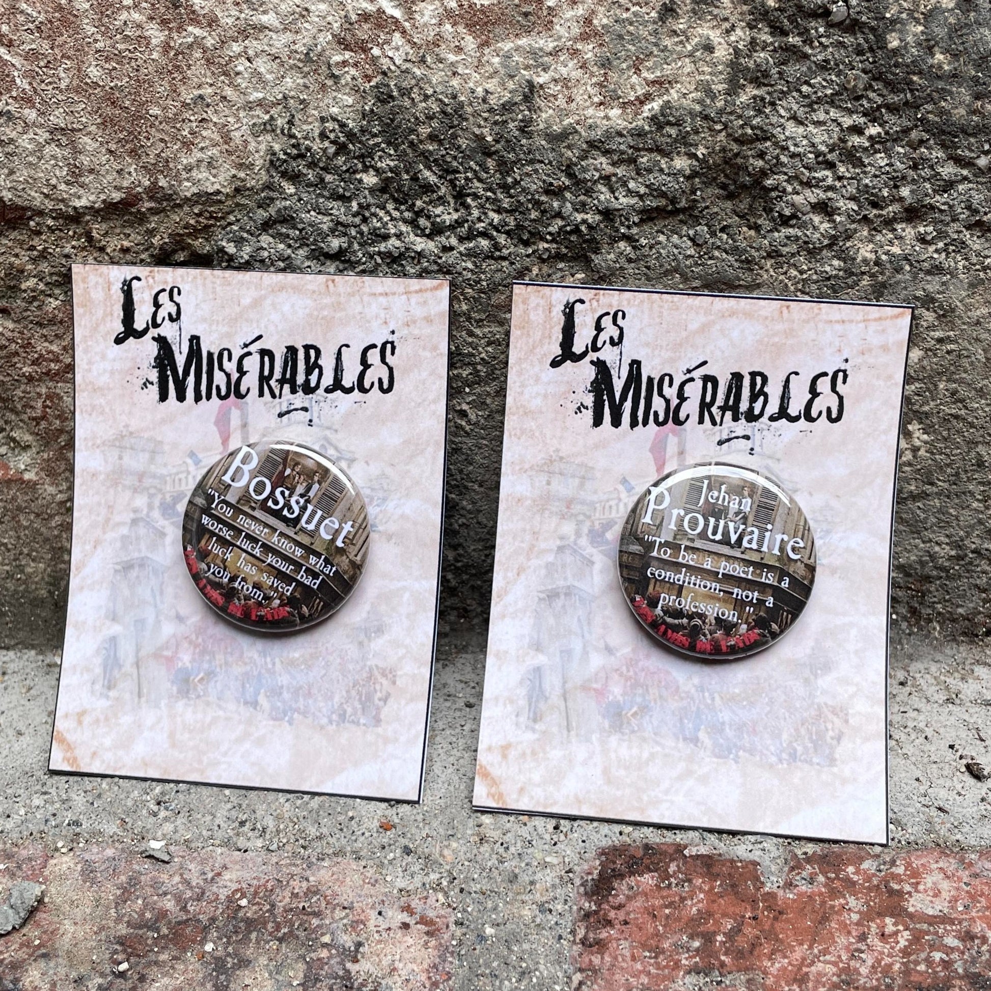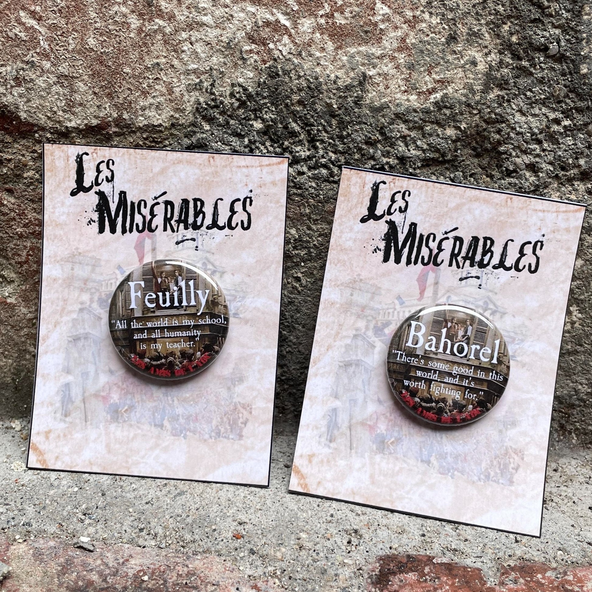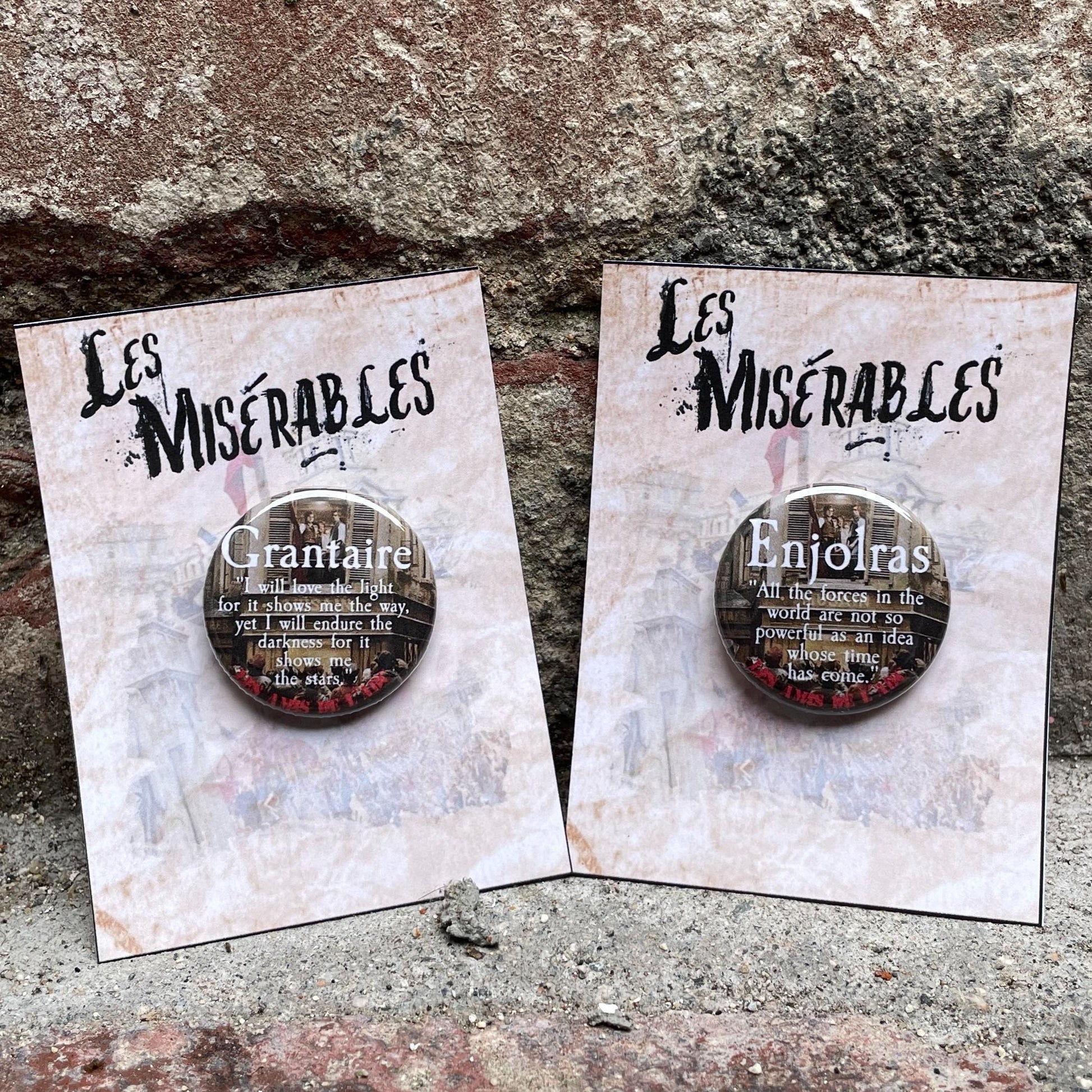 This bundle honors each of the lead Boys who fought together on the Barricade. Each pin features the name of a Barricade Boy along with a quote from the famous novel attributed to him. "Liberté, Égalité, Fraternité!"