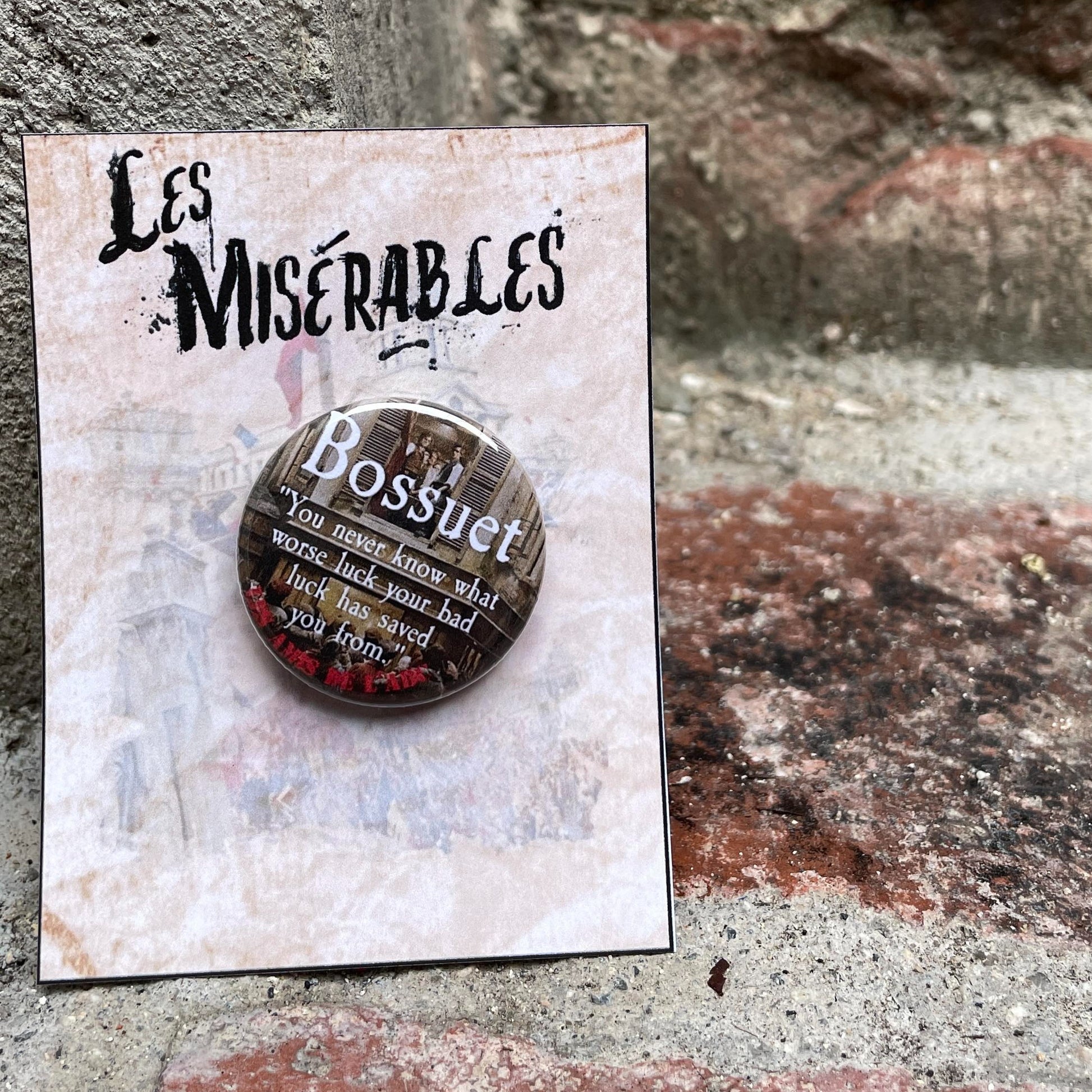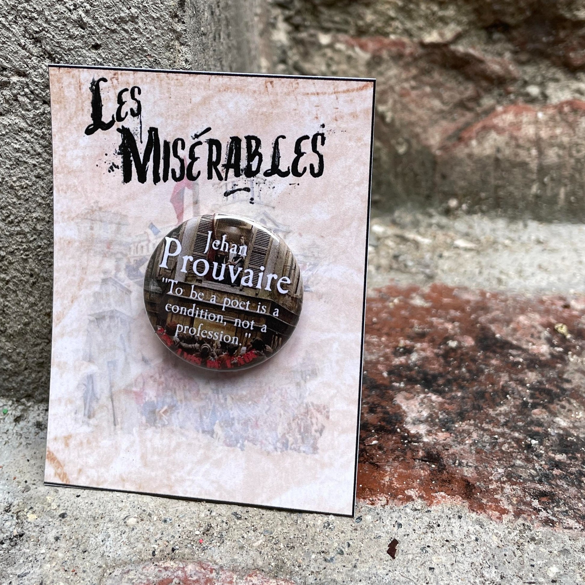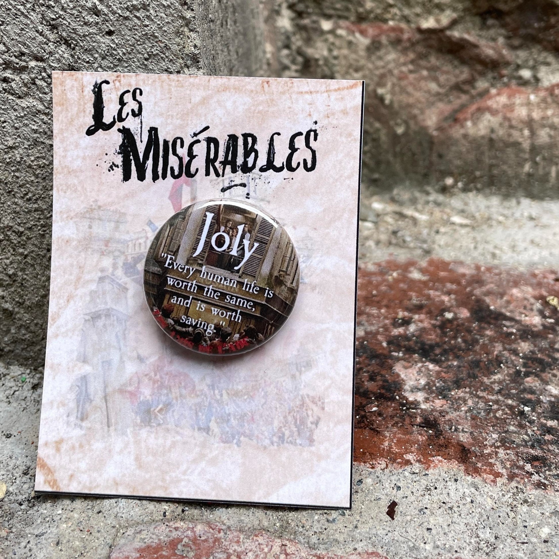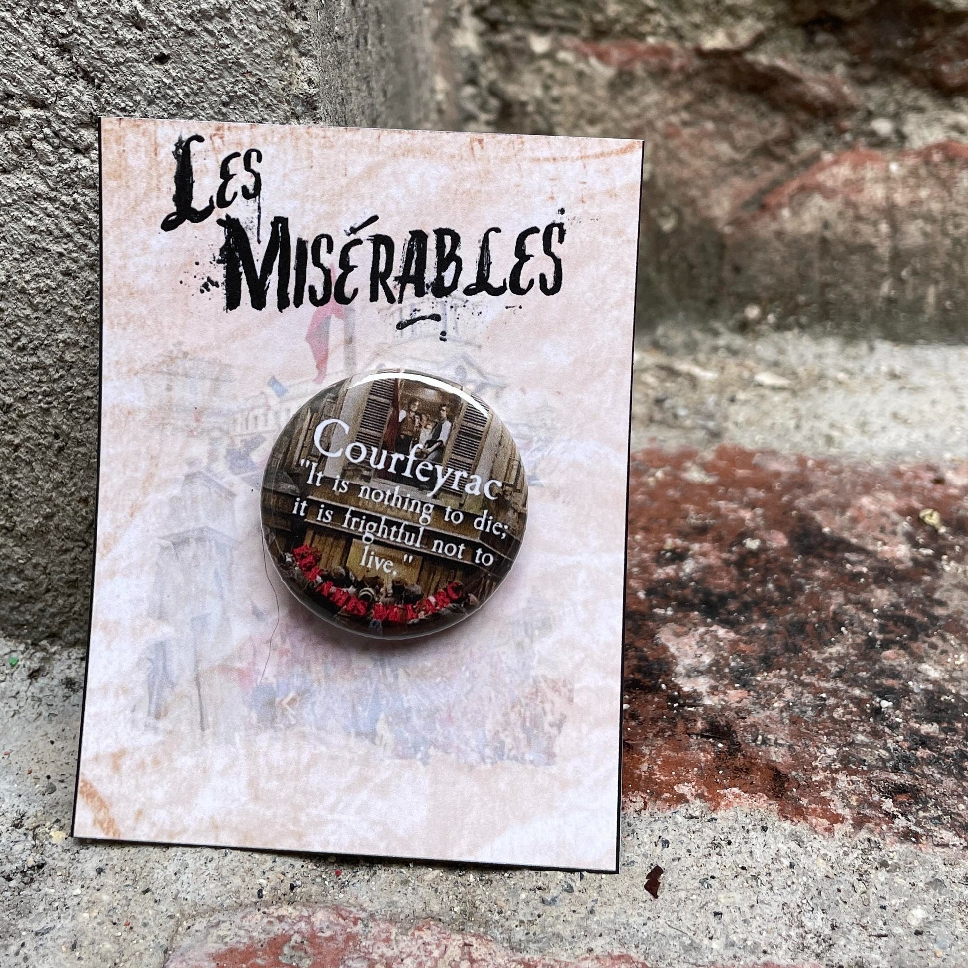This bundle honors each of the lead Boys who fought together on the Barricade. Each pin features the name of a Barricade Boy along with a quote from the famous novel attributed to him. "Liberté, Égalité, Fraternité!"