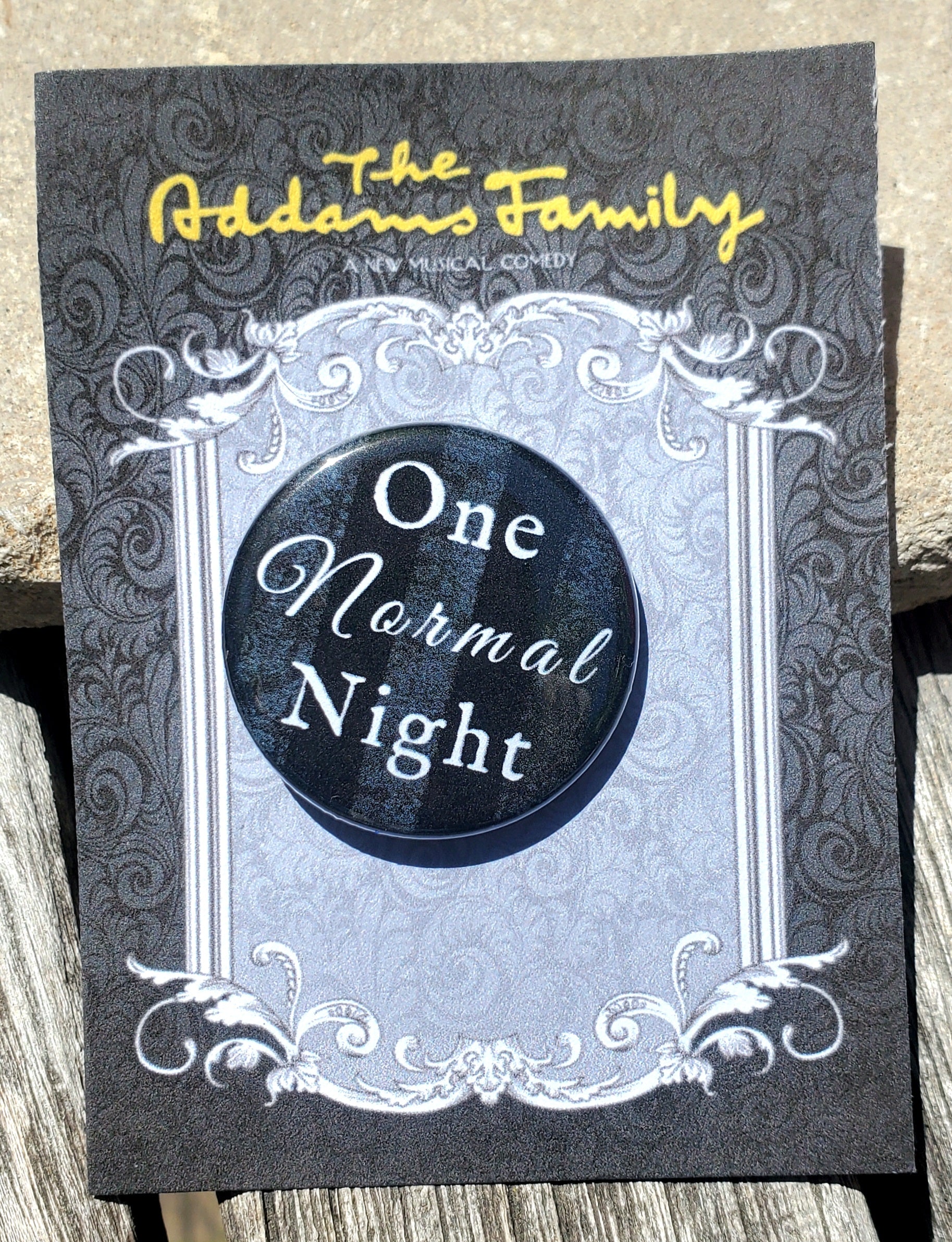 Inspired by ADDAMS FAMILY the musical, this pin calls out for "One Normal Night." It makes the perfect cast gift, for performers at a stage door, or as a unique memento for opening night or a final performance. It is packaged and ready for gift-giving or display.