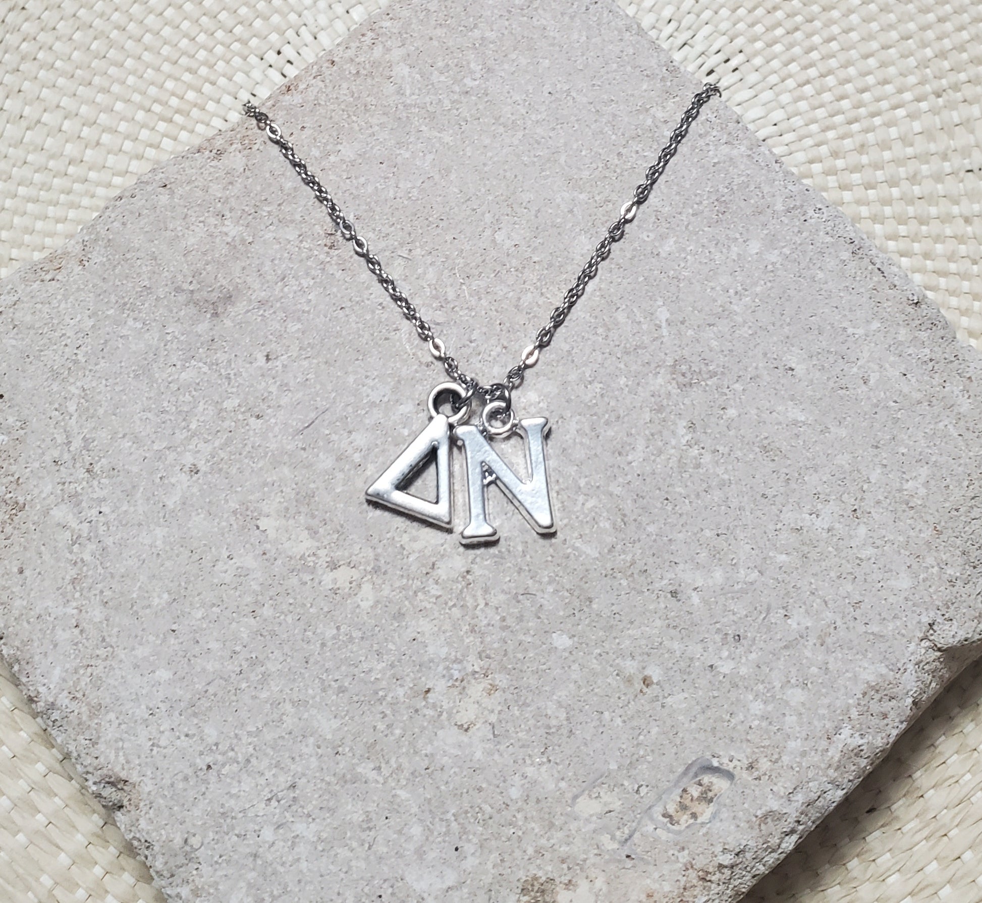 This 16 inch silver metal necklace, featuring delta and N charms, makes a lovely keepsake! This item makes the perfect gift for ELLE WOODS or any of the sorority sisters in your cast, for performers at a stage door, or as a unique memento for opening night or a final performance. It is wrapped and ready for gift-giving or display.