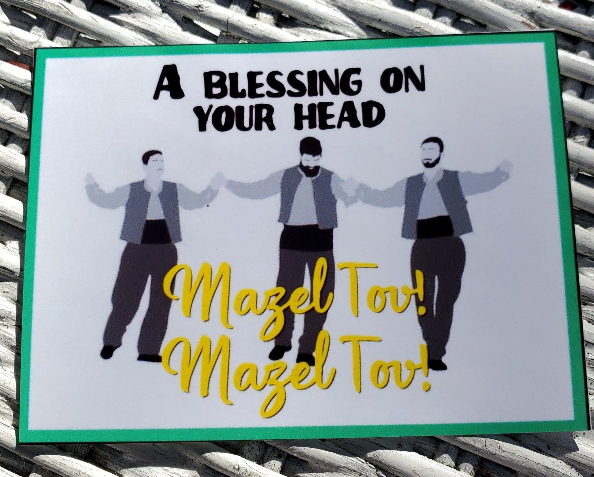 "A Blessing on Your Head! Mazel Tov! Mazel Tov!" is featured on this refrigerator magnet. It makes the perfect gift for your cast, for performers at a stage door, or as a unique memento for opening night or a final performance.