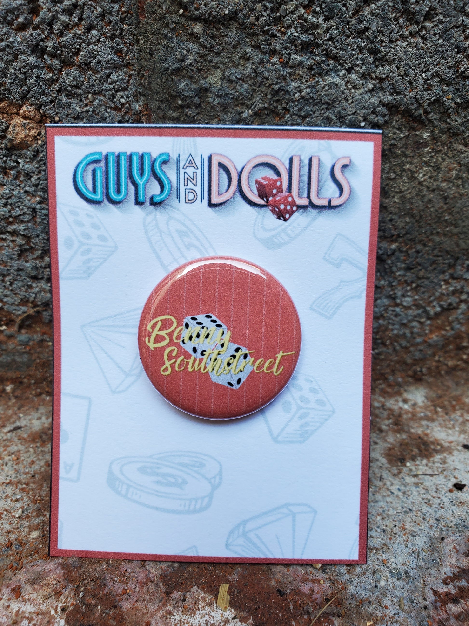 GUYS AND DOLLS "Benny Southstreet" Metal Pinback Butoon