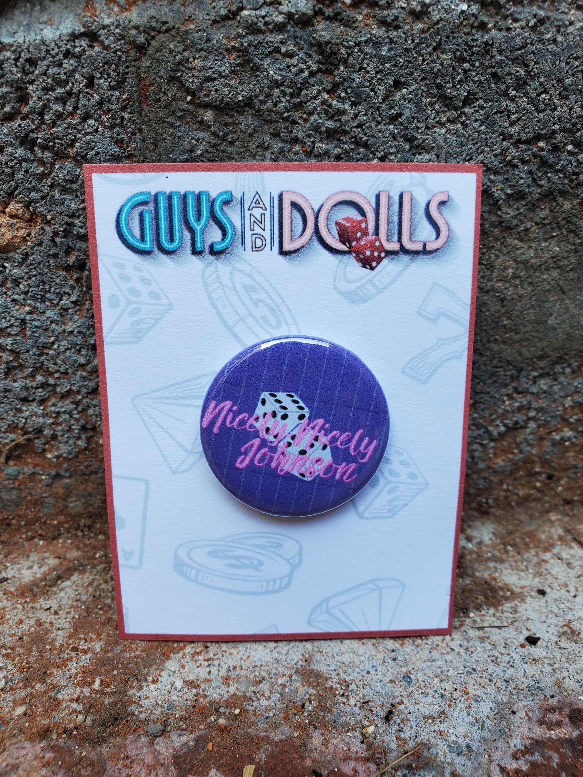 GUYS AND DOLLS "Nicely Nicely Johnson" Metal Pinback Button