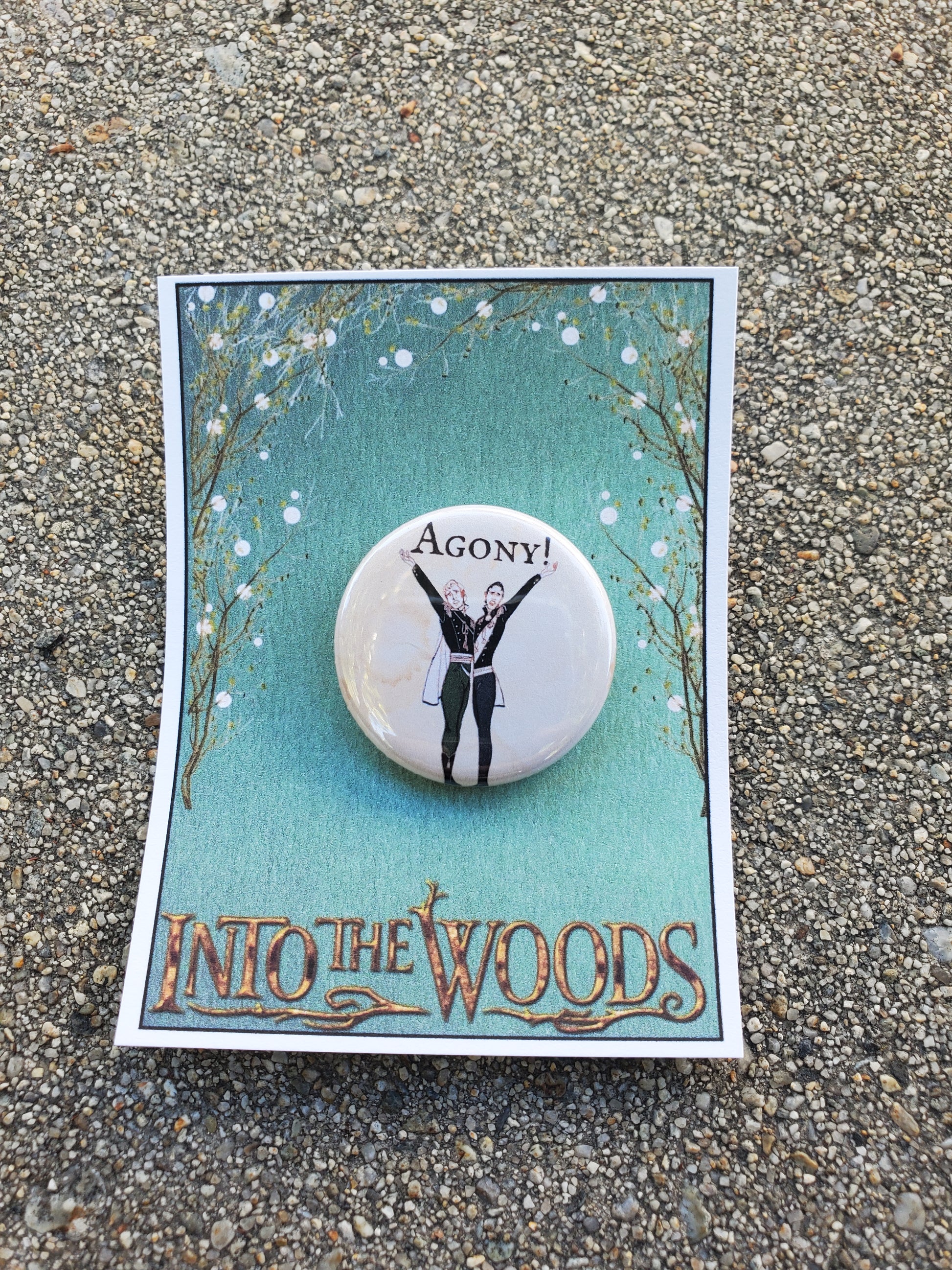 Rapunzel's Prince and Prince Charming are featured on this "Agony" pin. It makes the perfect gift for your cast, for performers at a stage door, or as a unique memento for opening night or a final performance. It is packaged and ready for gift-giving or display.