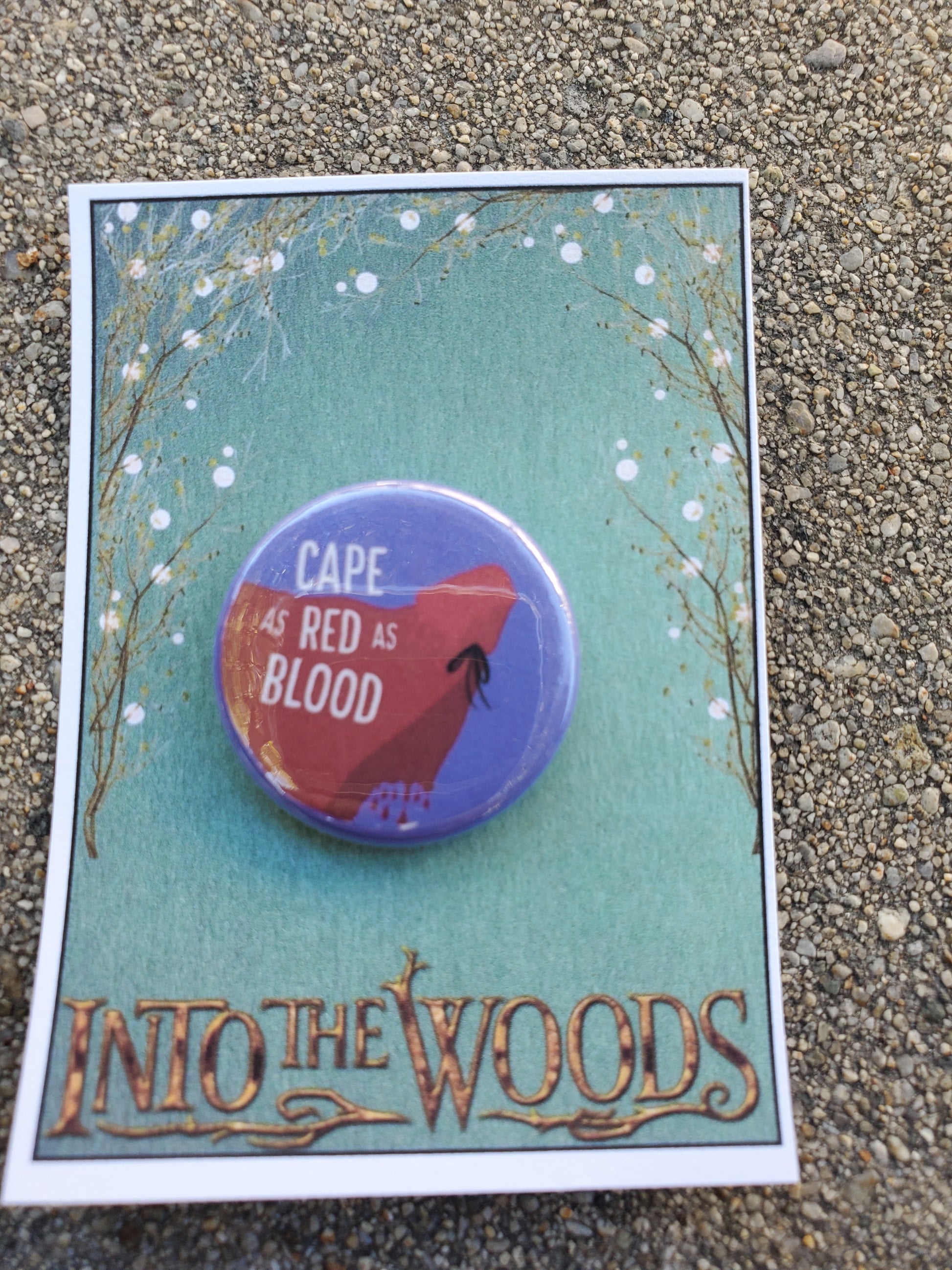 INTO THE WOODS "Cape as Red as Blood" Metal Pinback Button