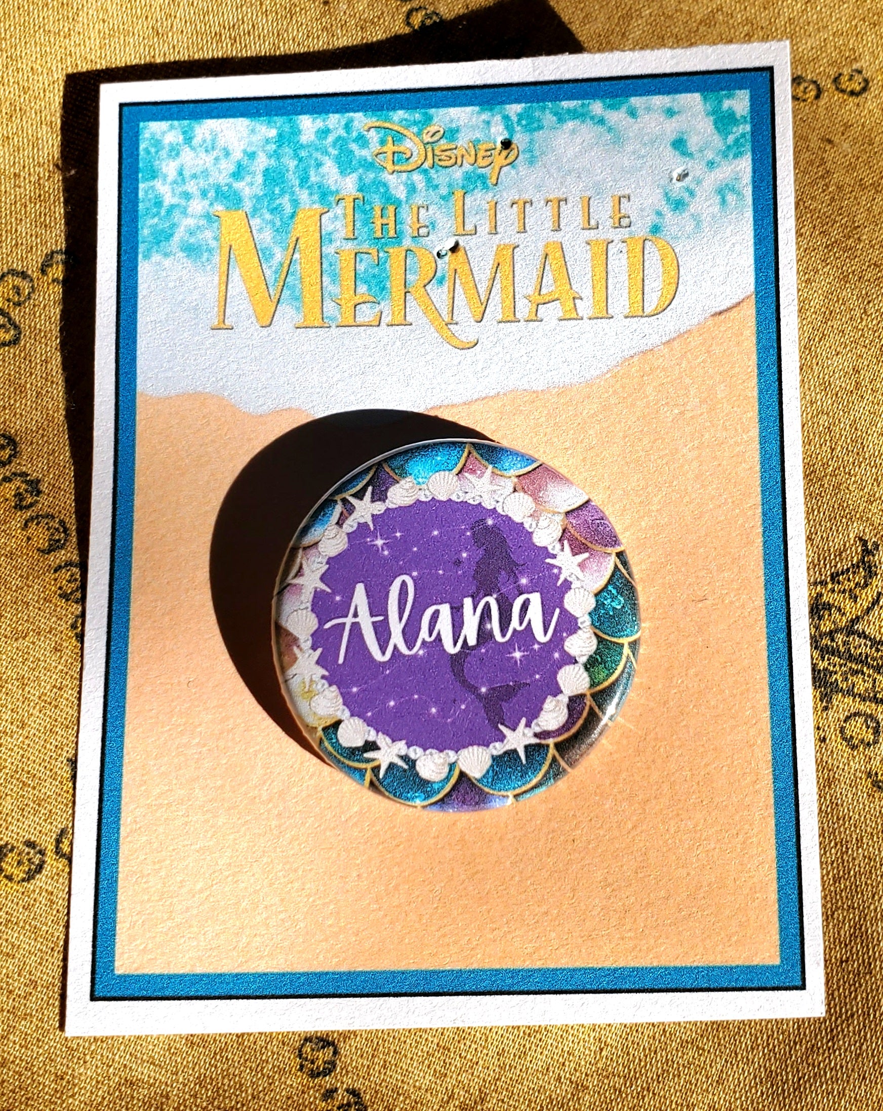 Inspired by "LITTLE MERMAID" the musical and movie, this colorful pin features Mersister "ALANA." It makes the perfect gift for your cast, for performers at a stage door, or as a unique memento for opening night or a final performance.