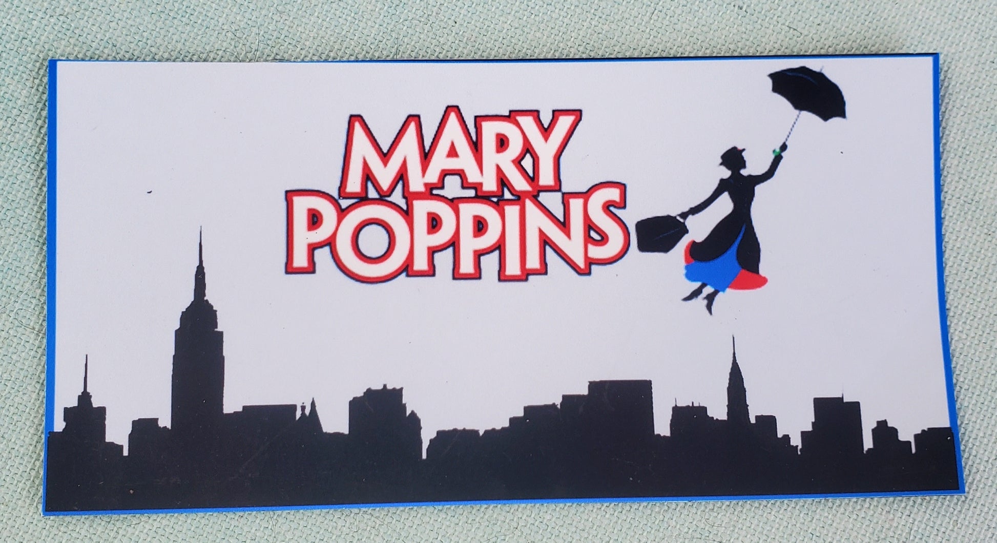 A fun "Show Logo" image inspired by the Mary Poppins movie and musical is featured on this refrigerator magnet. It makes the perfect gift for your cast, for performers at a stage door, or as a unique memento for opening night or a final performance. It is packaged and ready for gift-giving or display.