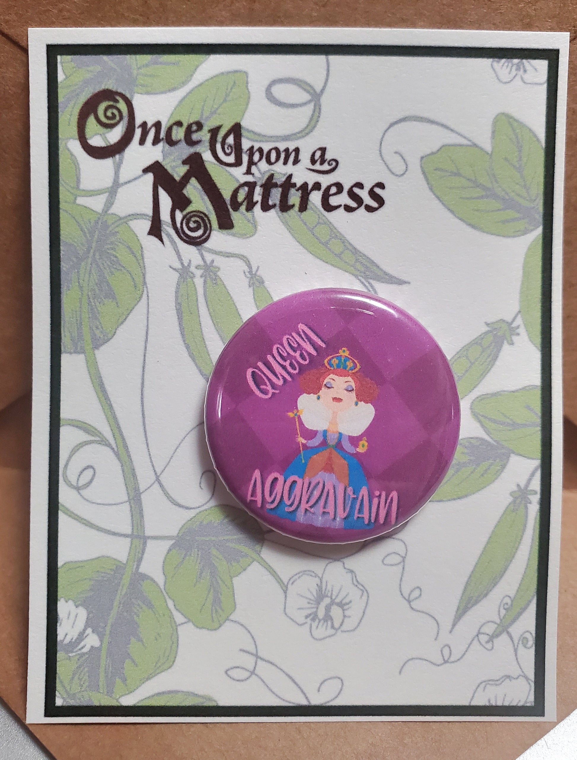 ONCE UPON A MATTRESS "Queen Aggravain" Metal Pinback Button