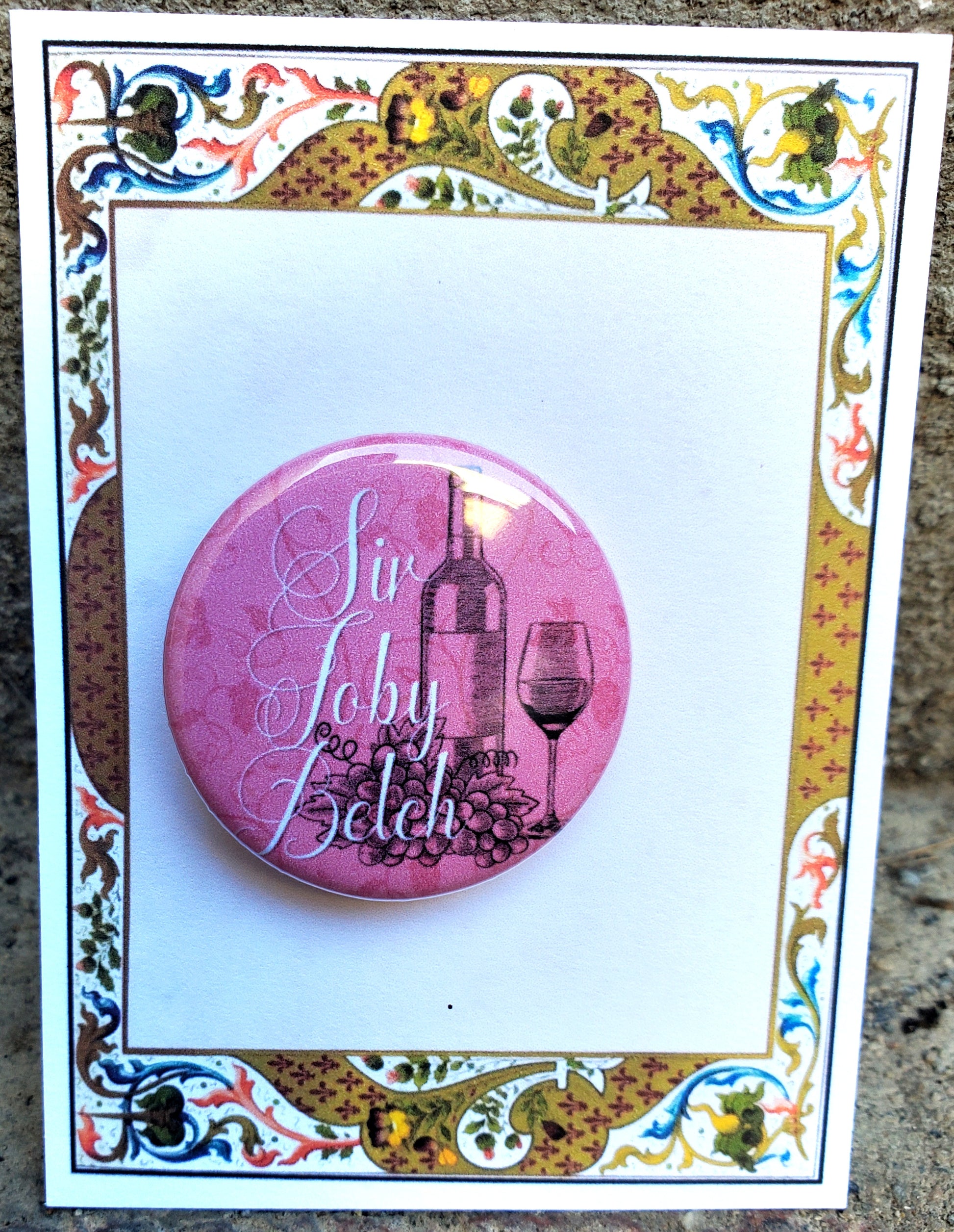 "Sir Toby Belch," Olivia's often drunk relation from Twelfth Night is featured on this pin. It makes the perfect gift for your cast, for performers at a stage door, or as a unique memento for opening night or a final performance. It is packaged and ready for gift-giving or display.