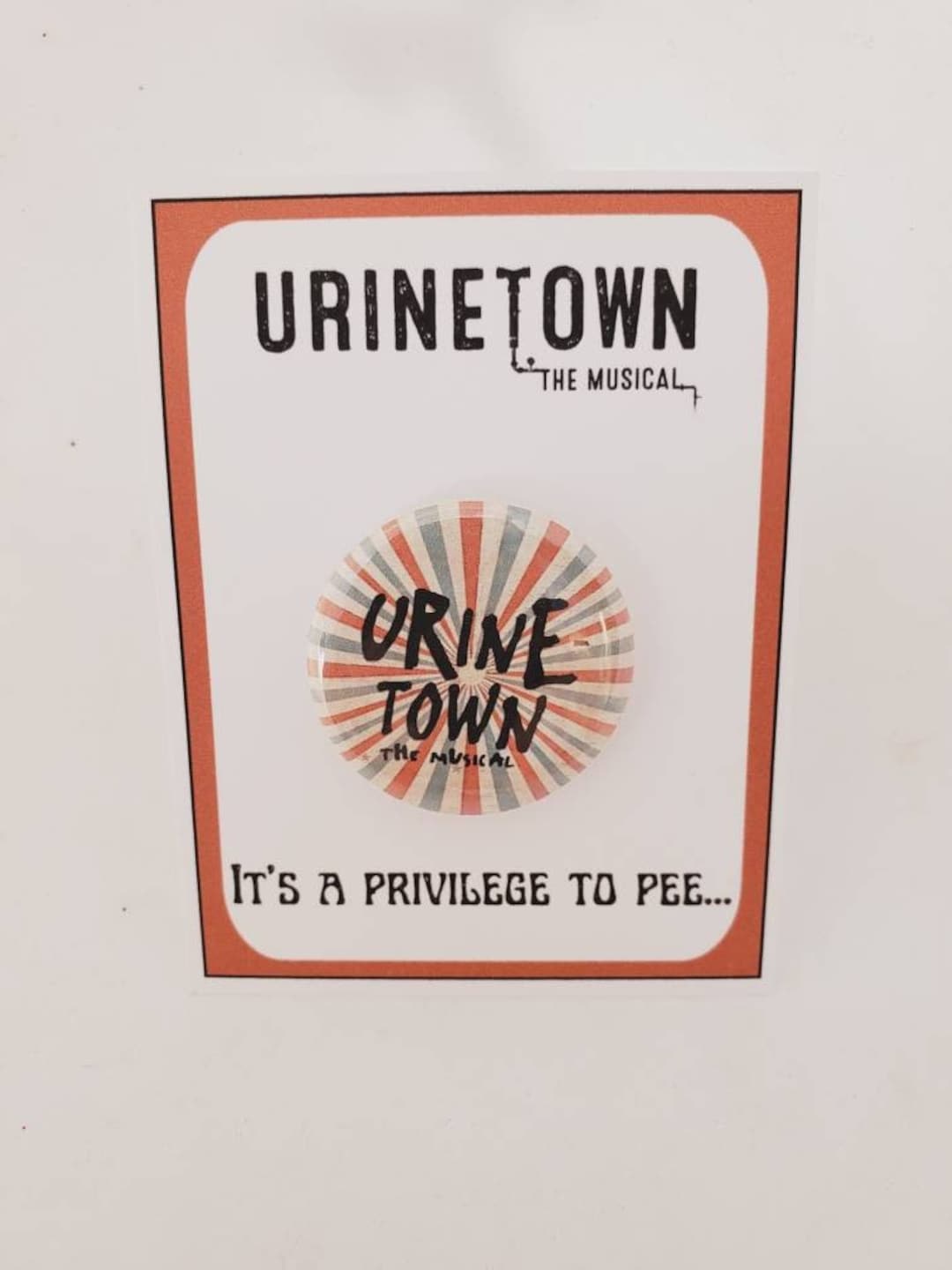 The iconic logo from the new musical URINETOWN is featured on this pin. It makes the perfect gift for your cast, for performers at a stage door, or as a unique memento for opening night or a final performance. It is packaged and ready for gift-giving or display.